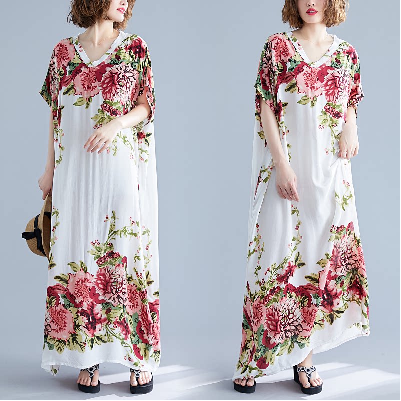 Пляжное платье, юбка, в западном стиле, подходит для полных девушек, оверсайз, в корейском стиле, стиль бохо, V-образный вырез