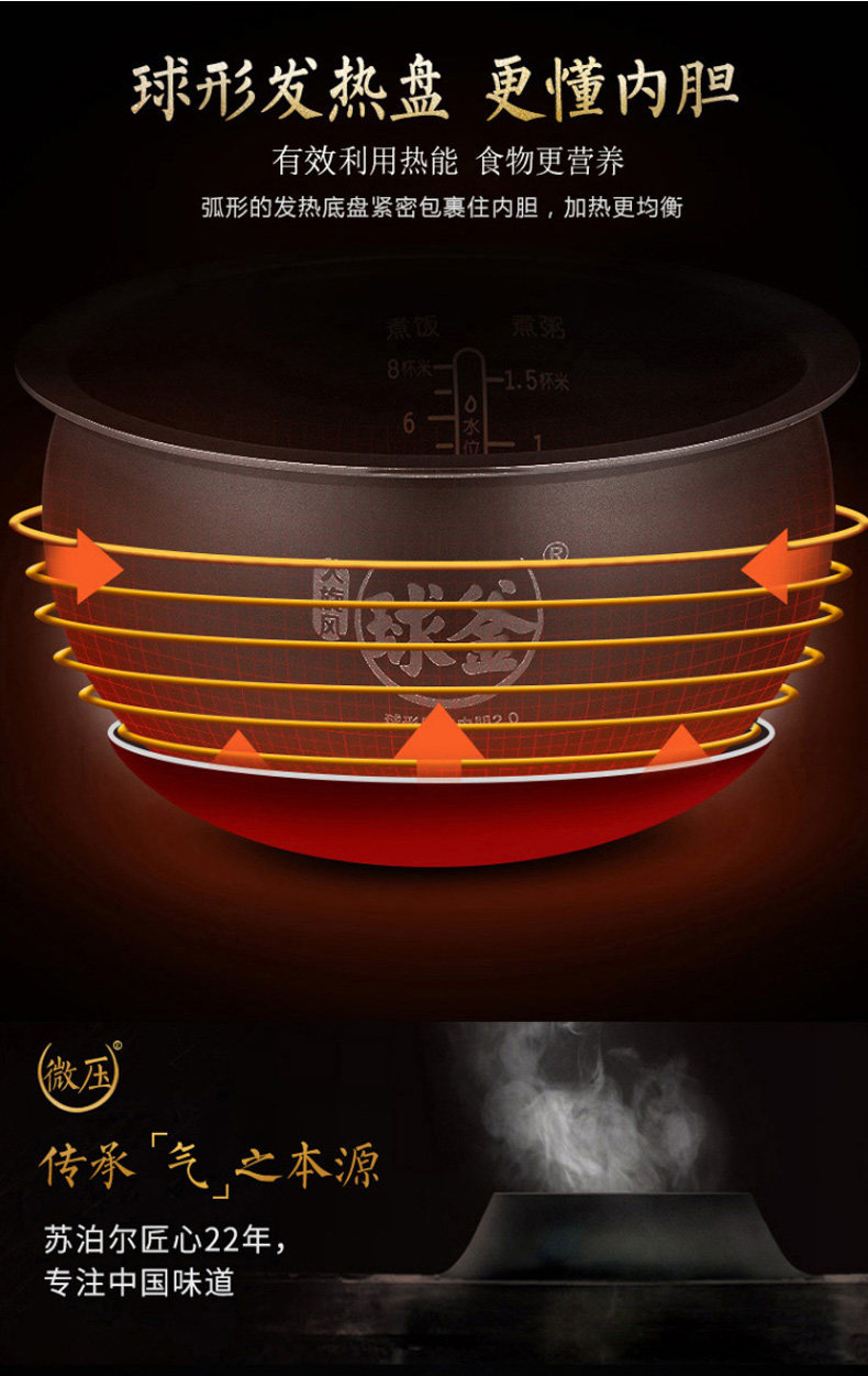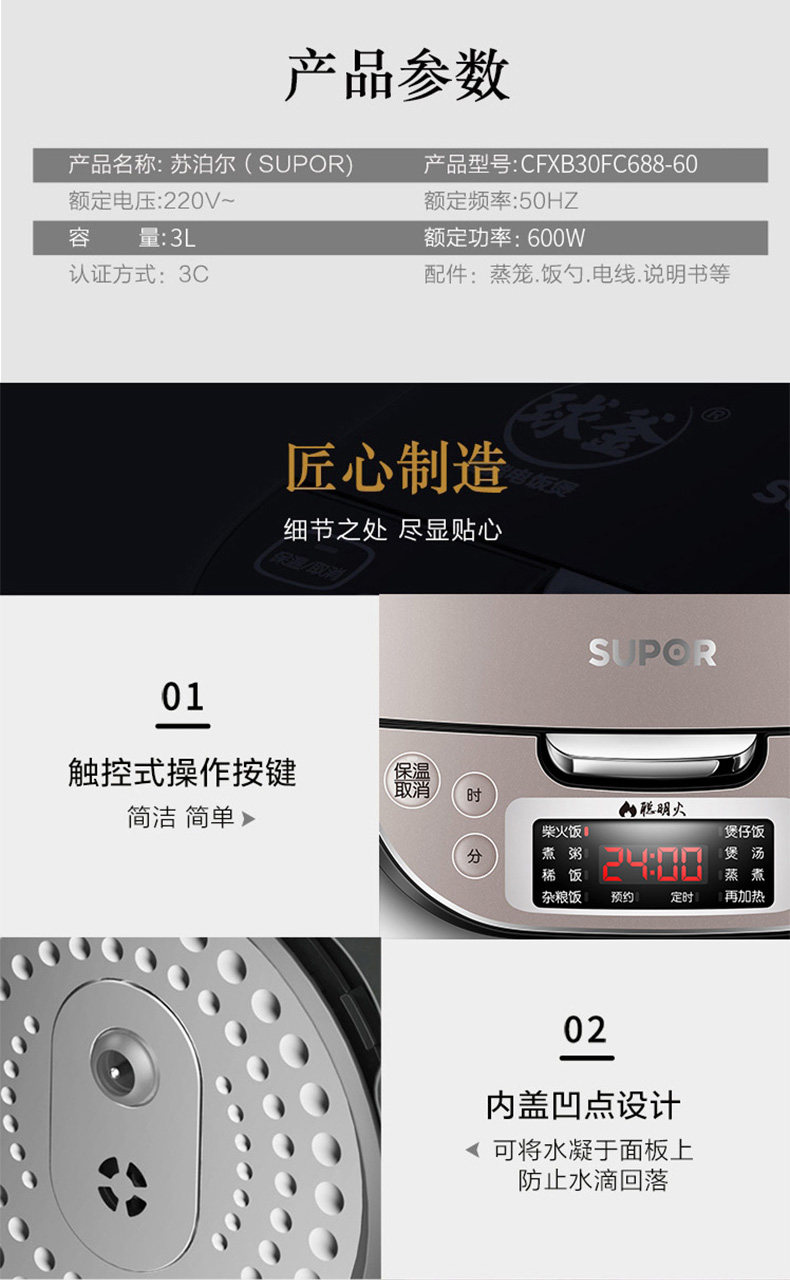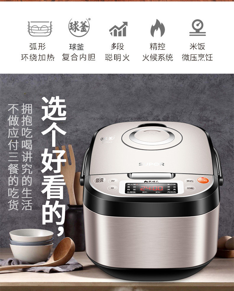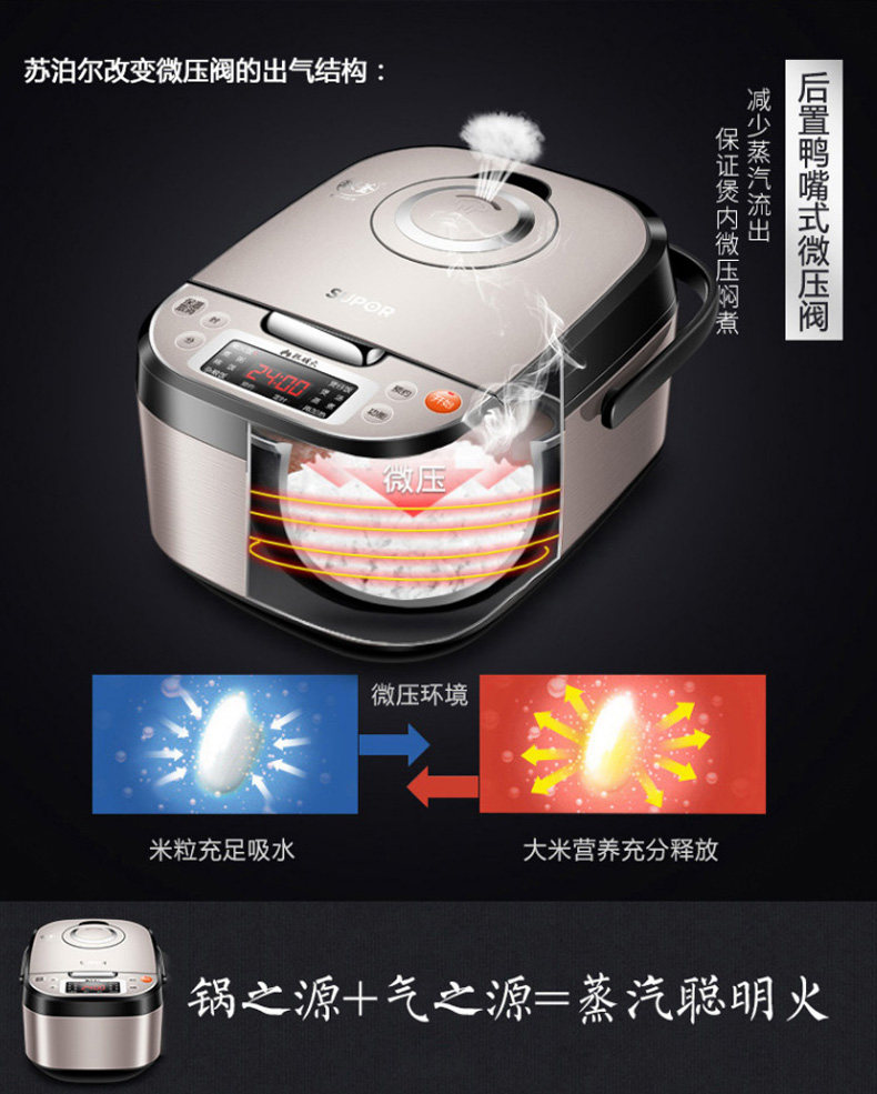 SUPOR RICE Плиты бронирование мяча Smart маленький рисовый горшок 3L Mini Mini Multifunctional Rice Pot 2-4 человека