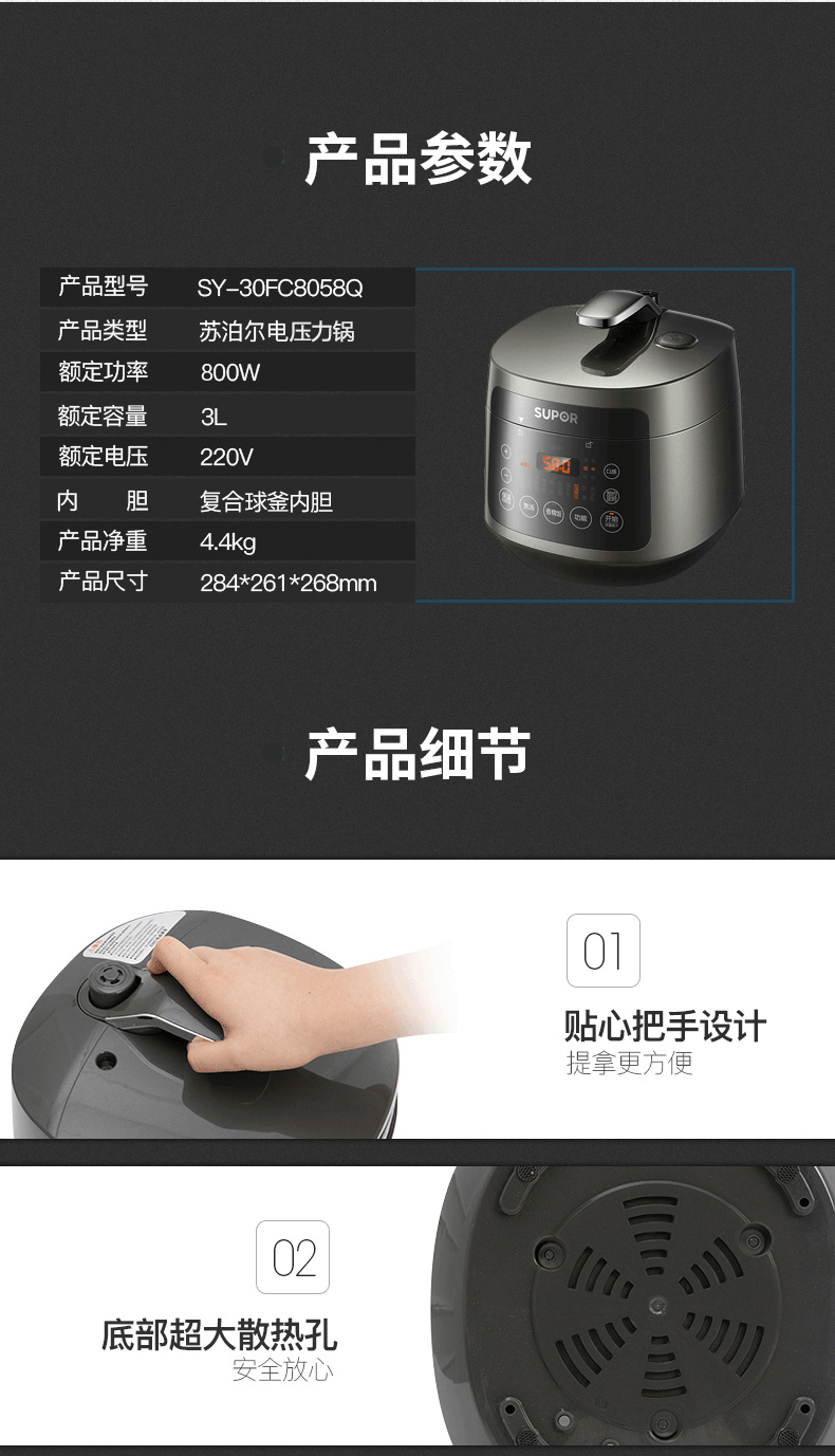 Шарик Supor Ball Электроэлектрический давление Давление Давление на разумную встречу рисоварки 3L Маленькая рисоватка многофункциональная электрическая горшка с высоким напряжением