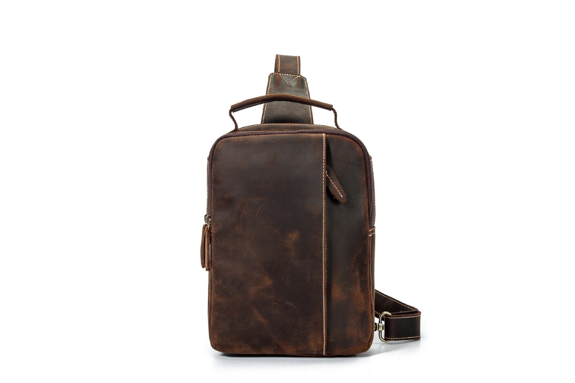 Мужская нагрудная сумка из коровьей кожи, винтажная уличная сумка через плечо из кожи Crazy Horse, небольшой спортивный рюкзак, модная брендовая мотоциклетная сумка для мужчин