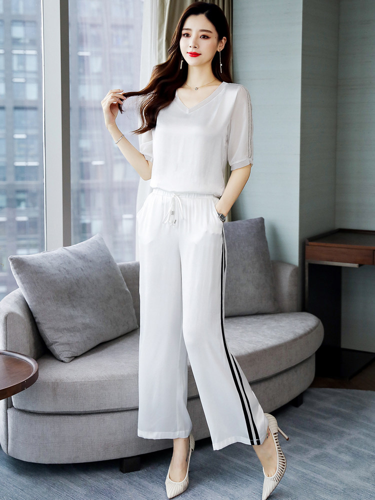 Летний шелковый спортивный костюм для отдыха, комплект, в корейском стиле, большой размер, в западном стиле
