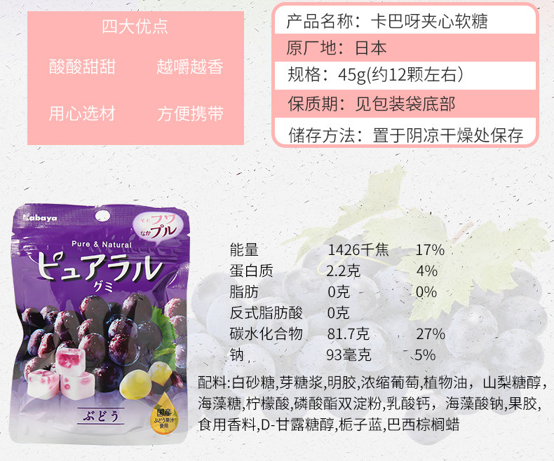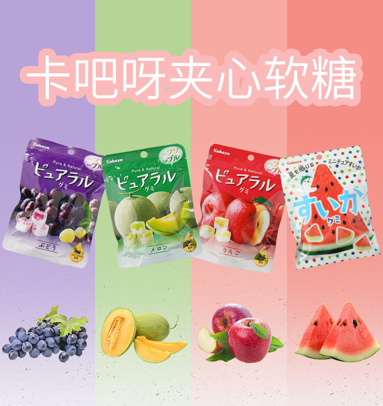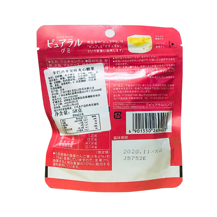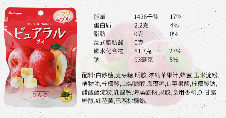 Япония импортированная закуска Kabaya Kaba также со вкусом яблока со вкусом яблока сэндвич -фрукты фруктовый сок конфеты 58G