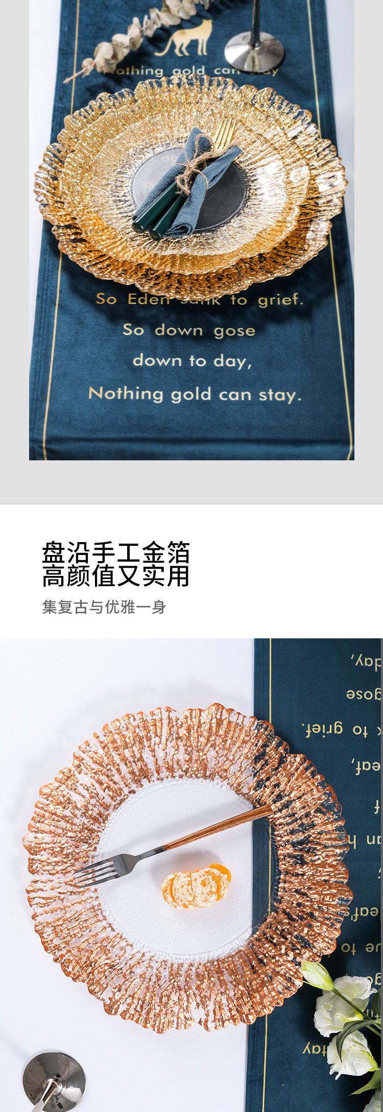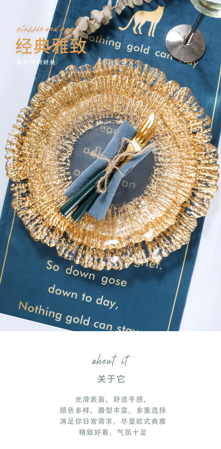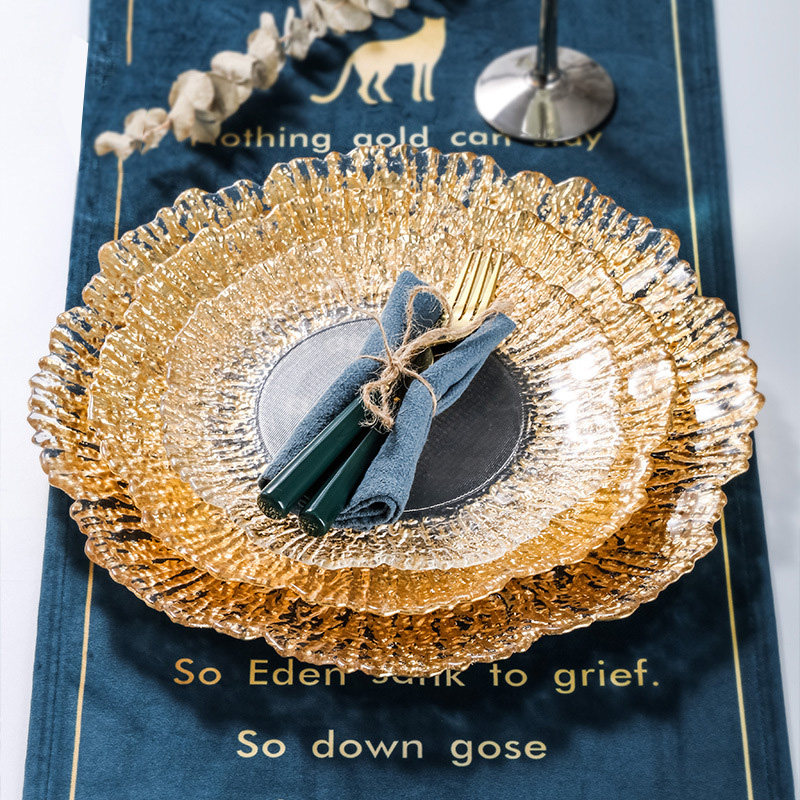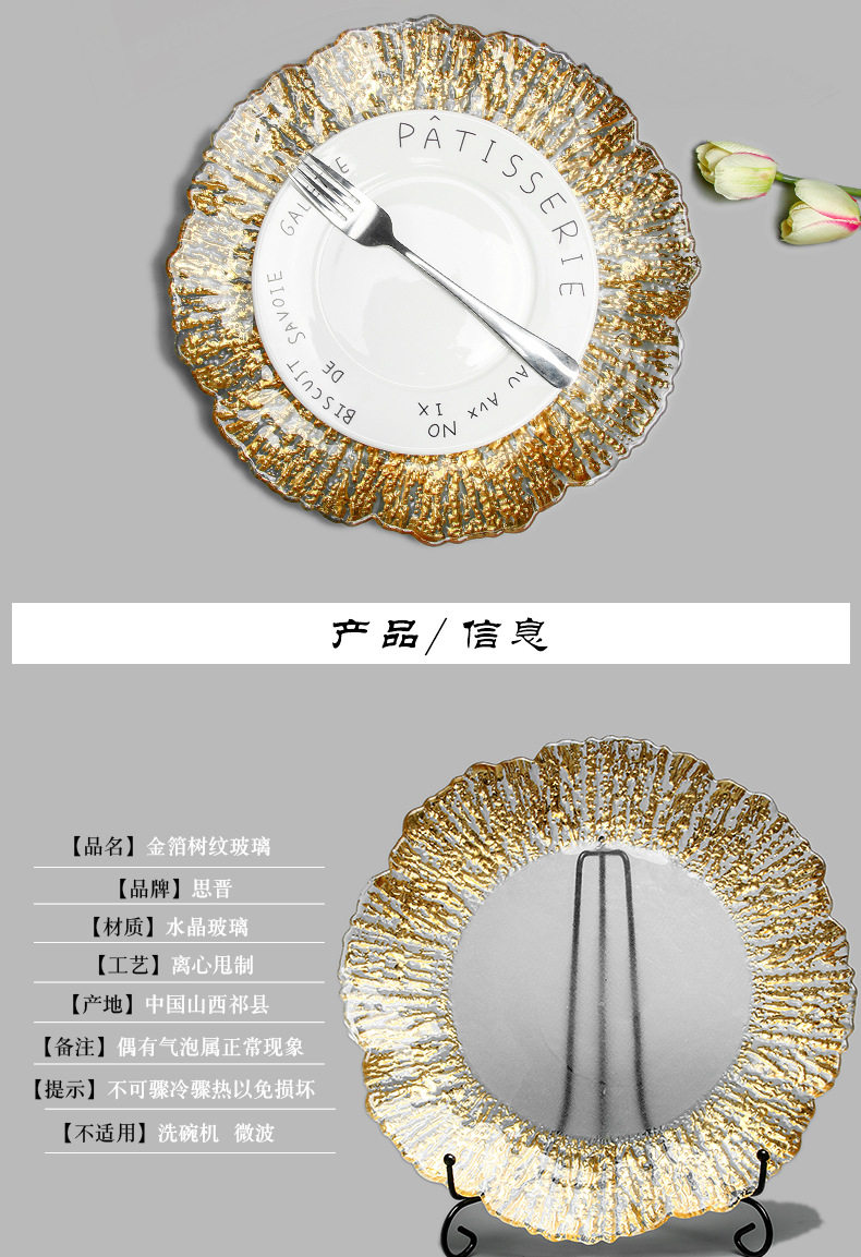 Высокие роскошные западные блюда золотые фольга коралловый стейк фруктовый пластина фруктовая тарелка стеклянная тарелка подушка золото