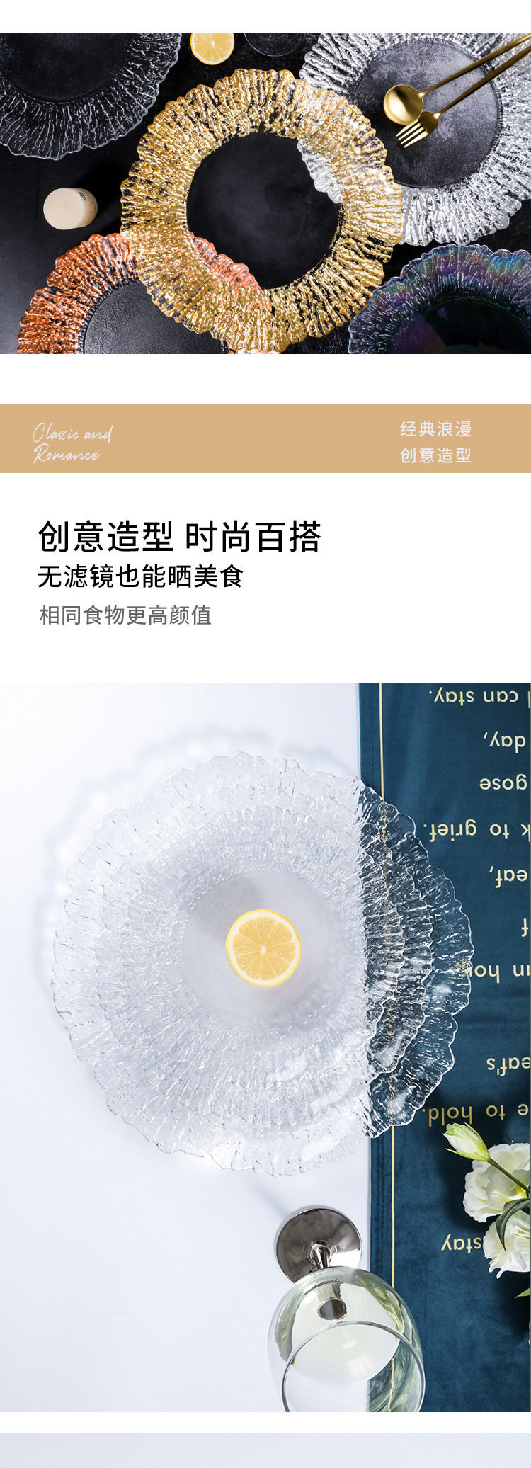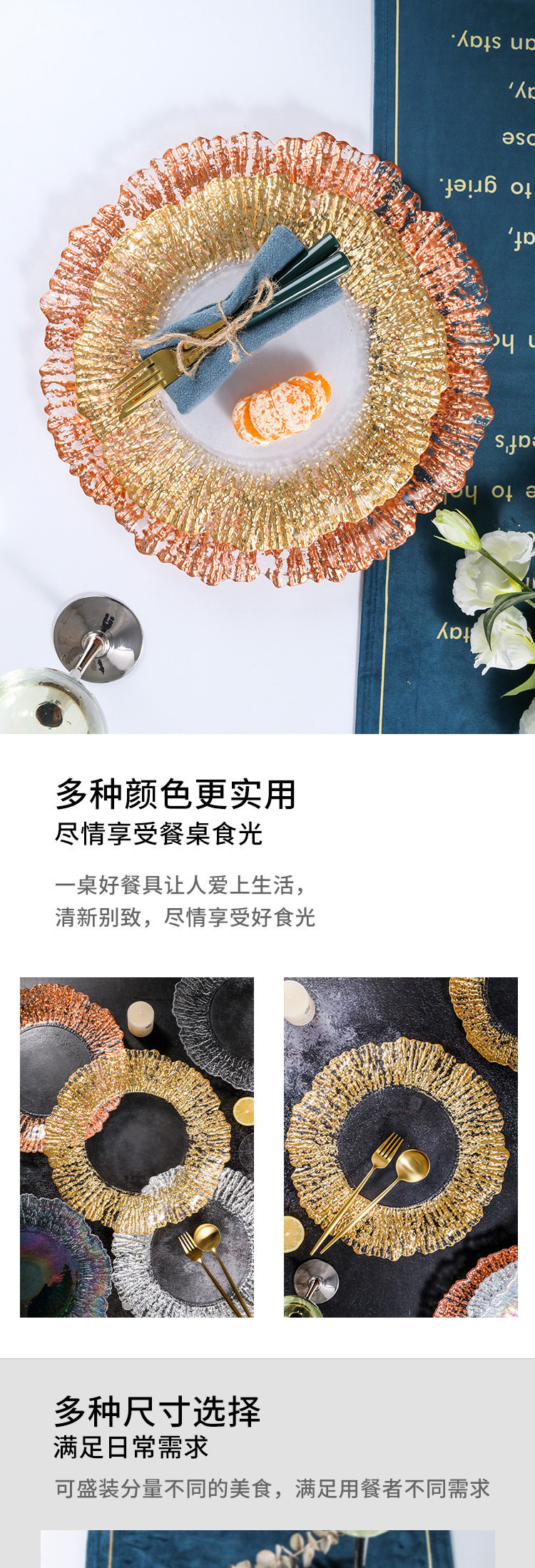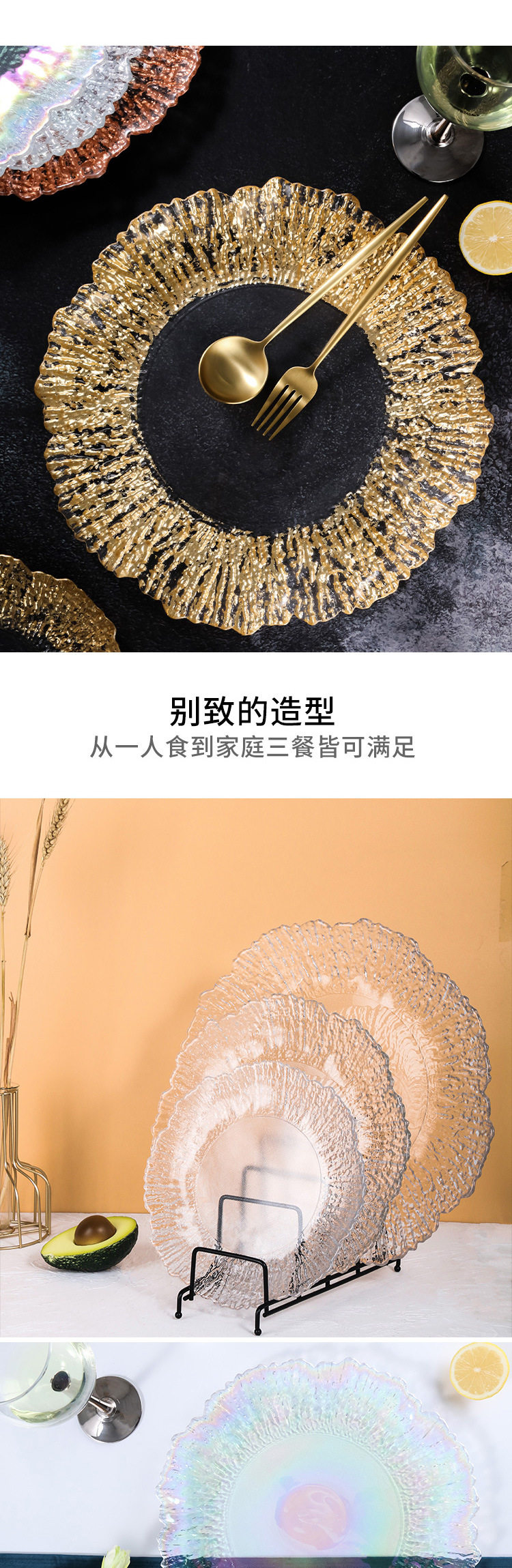 Высокие роскошные западные блюда золотые фольга коралловый стейк фруктовый пластина фруктовая тарелка стеклянная тарелка подушка золото
