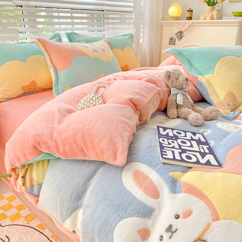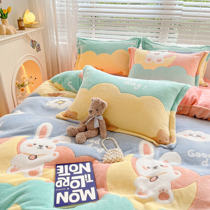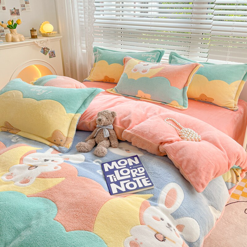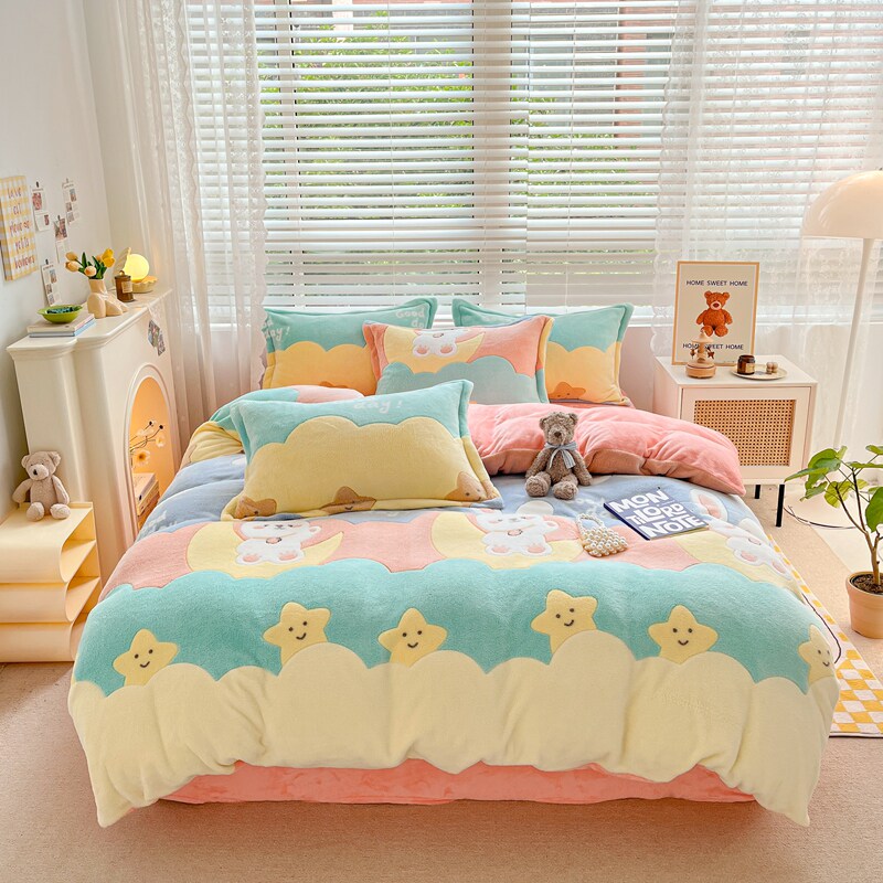 Коралловый зимний комплект, фланелевое покрывало, флисовая простыня, пододеяльник, 4 предмета, 3 предмета