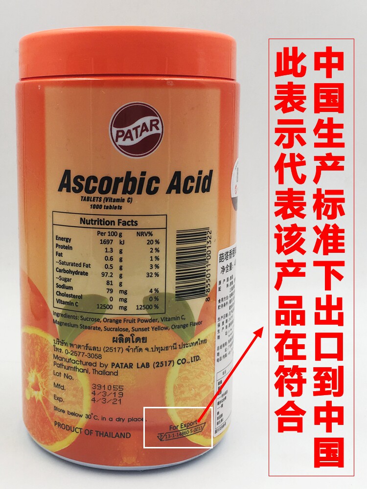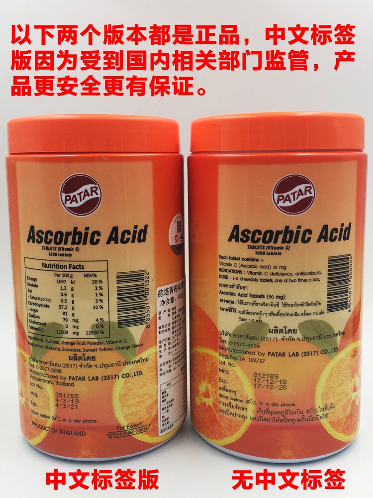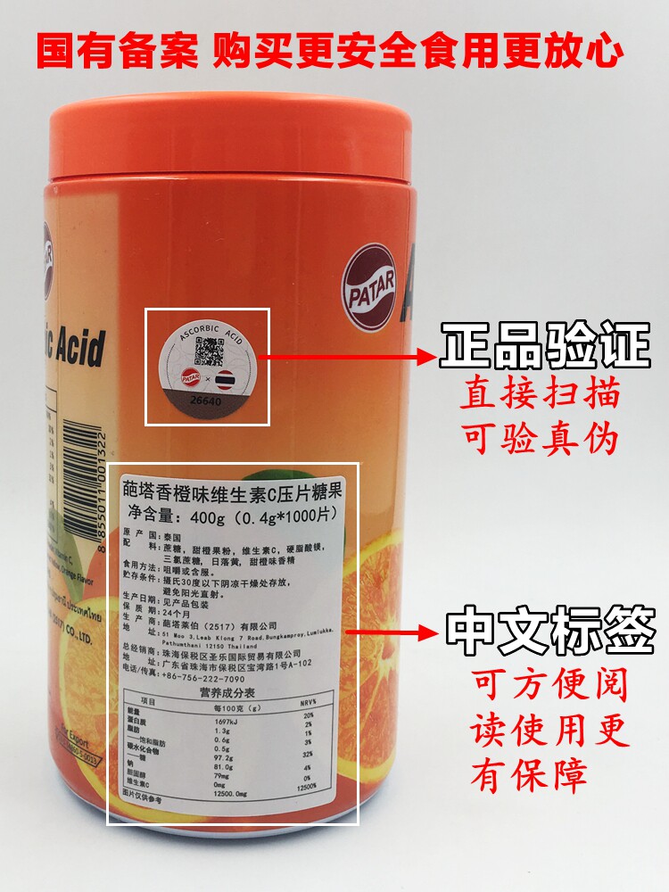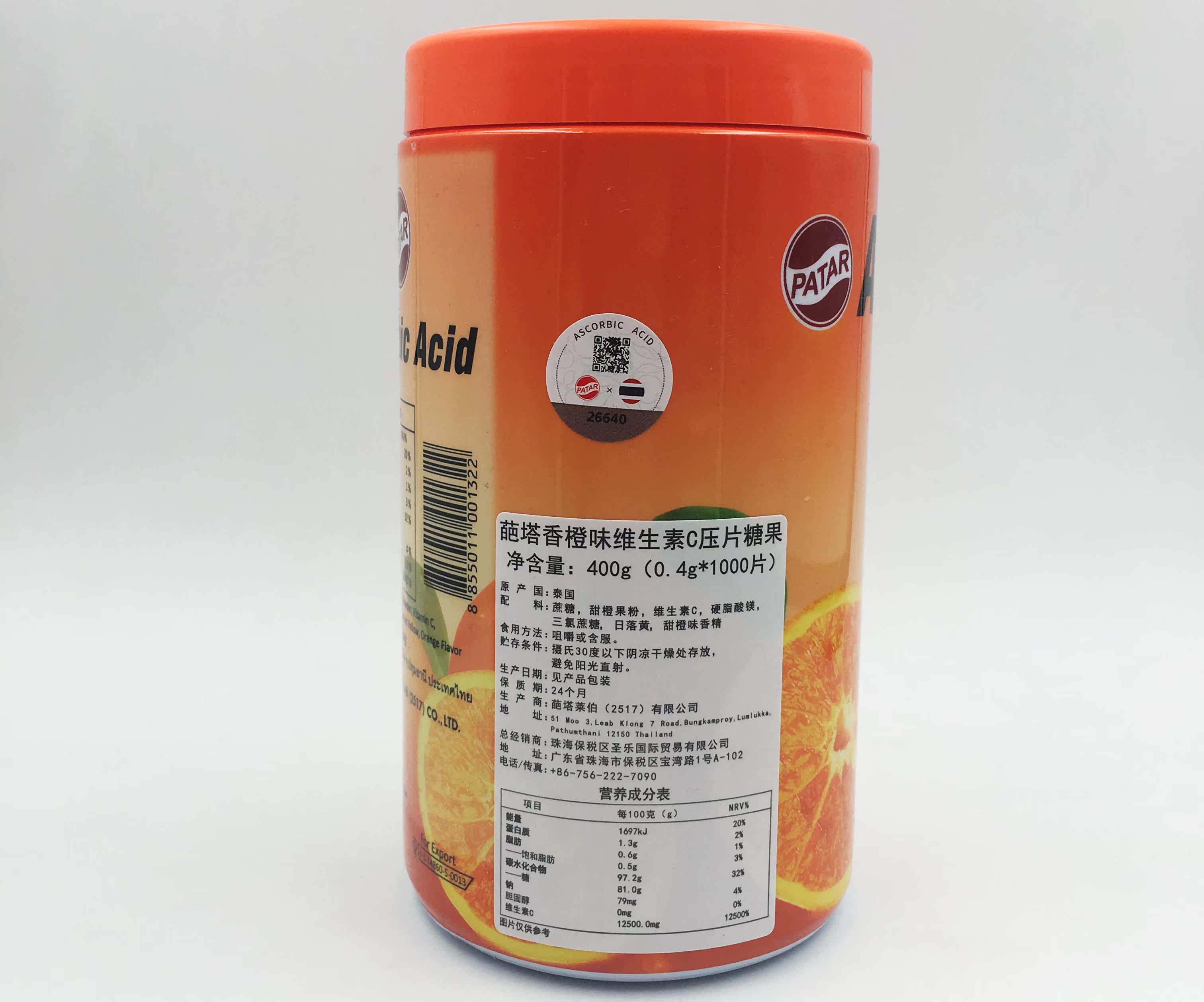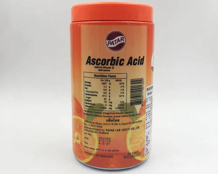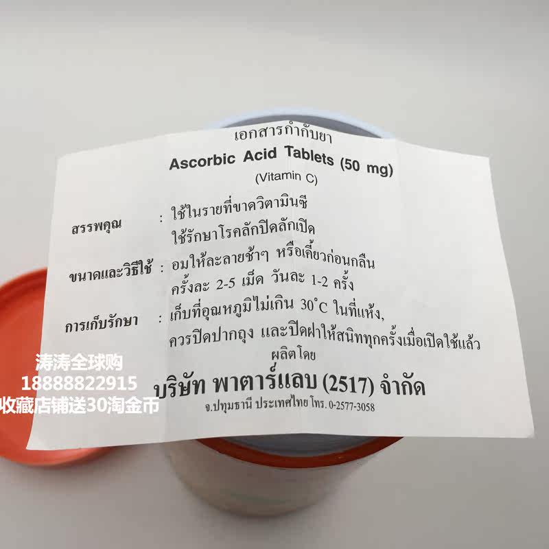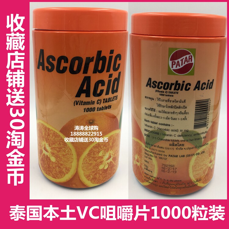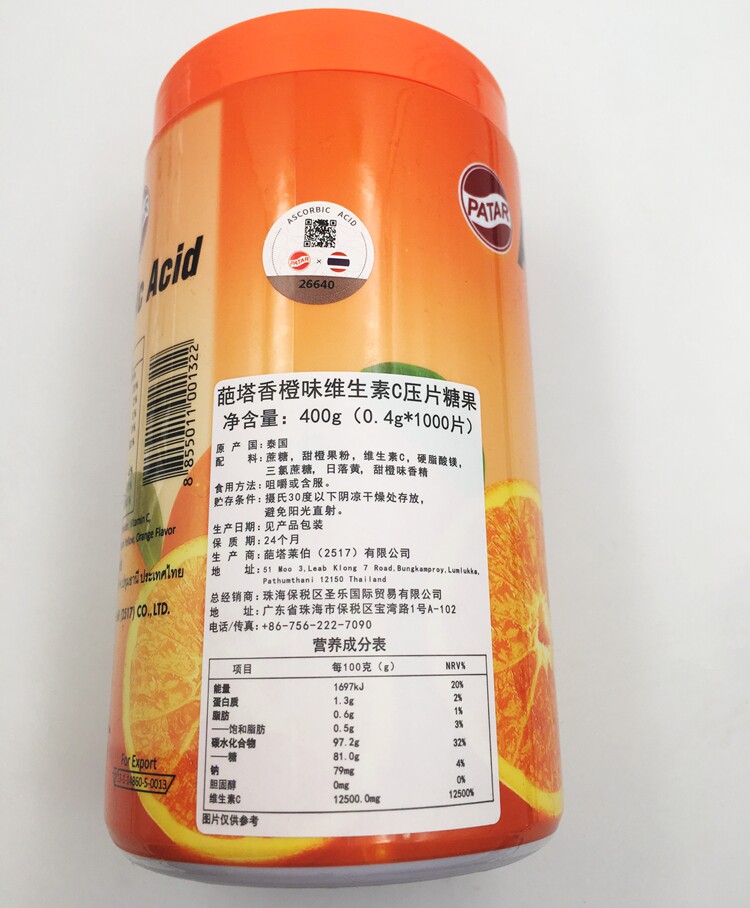 Тайская таблетка Thai Thai Patar Vitamin C Sweed содержит VC Tatavi, апельсиновый вкус 1000 детей взрослые