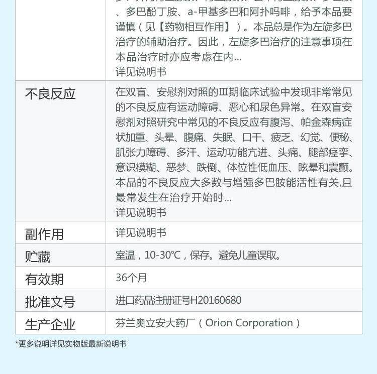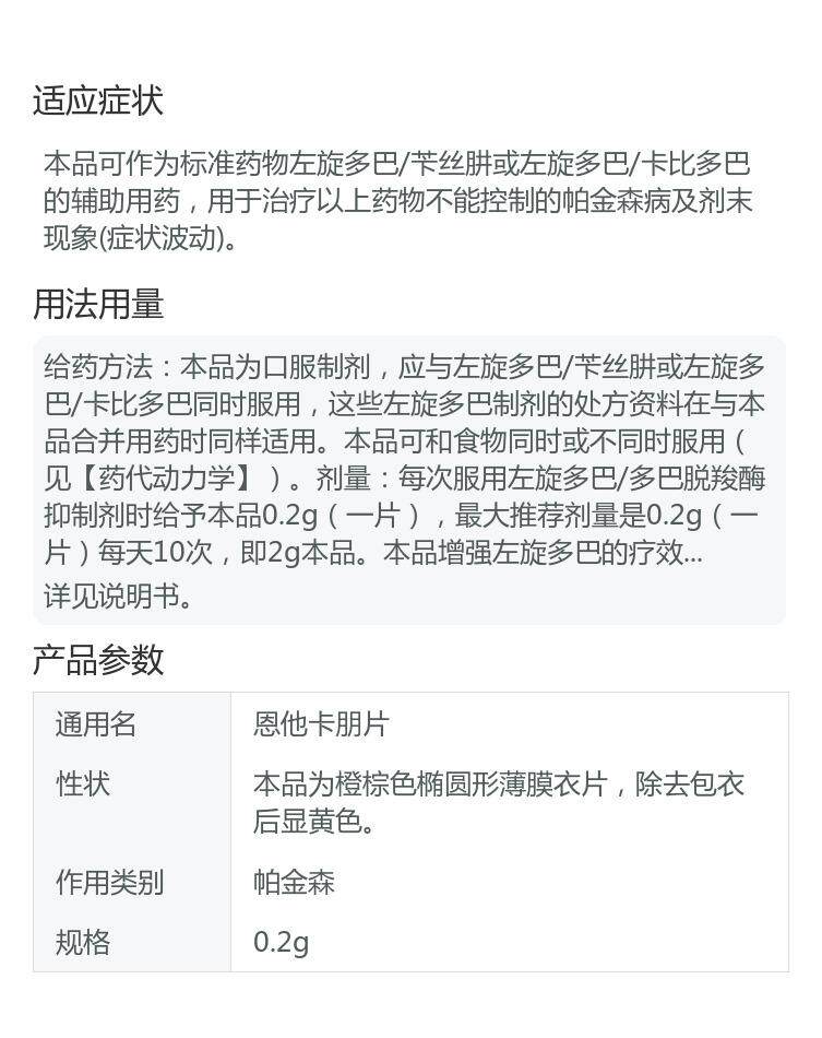 COMTAN Кедан Ка -Пенг Таблетка 0,2 г*30 Таблетки/коробка мышечная жесткая статическая тремор Паркинсона предпочитает колебание болезни Паркинсона
