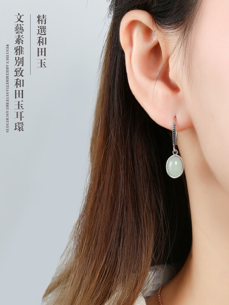Ретро серьги из нефрита, серебро 925 пробы, простой и элегантный дизайн, популярно в интернете, для влюбленных, подарок на день рождения