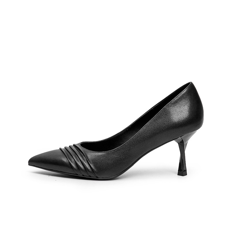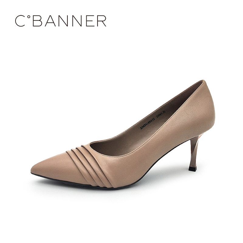 Женская обувь Qianbaidu, весенне-осенняя обувь с острым носком, темпераментная, формальная, с мелким открытым носком, со складками, для поездок на работу, на спиральном каблуке, телесного цвета, на шпильке