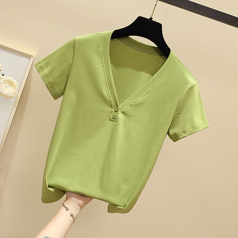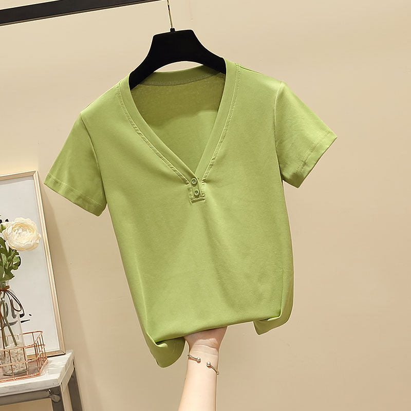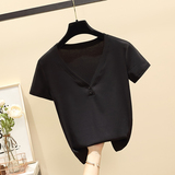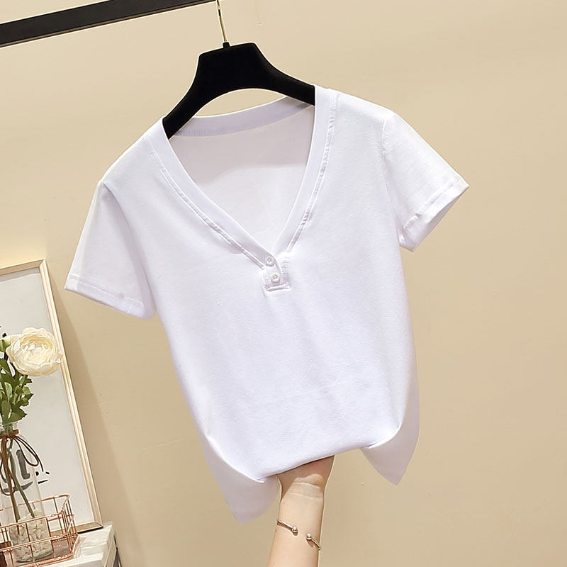 Летняя брендовая футболка, V-образный вырез, короткий рукав, 2020, облегающий крой, большой размер