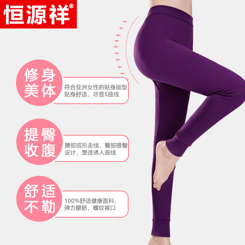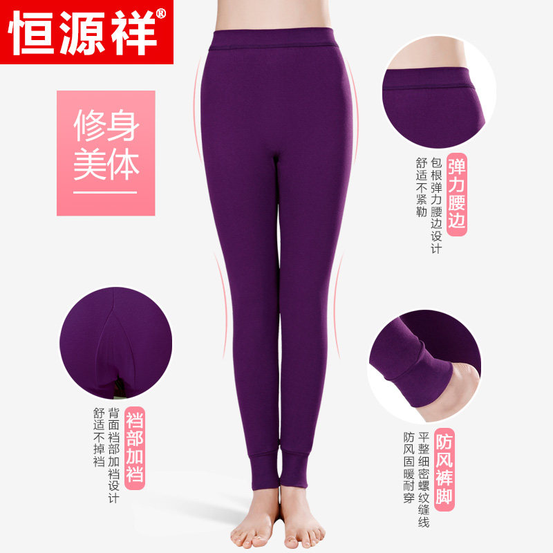 恒源祥 Термобелье, тонкие хлопковые зимние эластичные удерживающие тепло штаны, оверсайз, большой размер, высокая талия