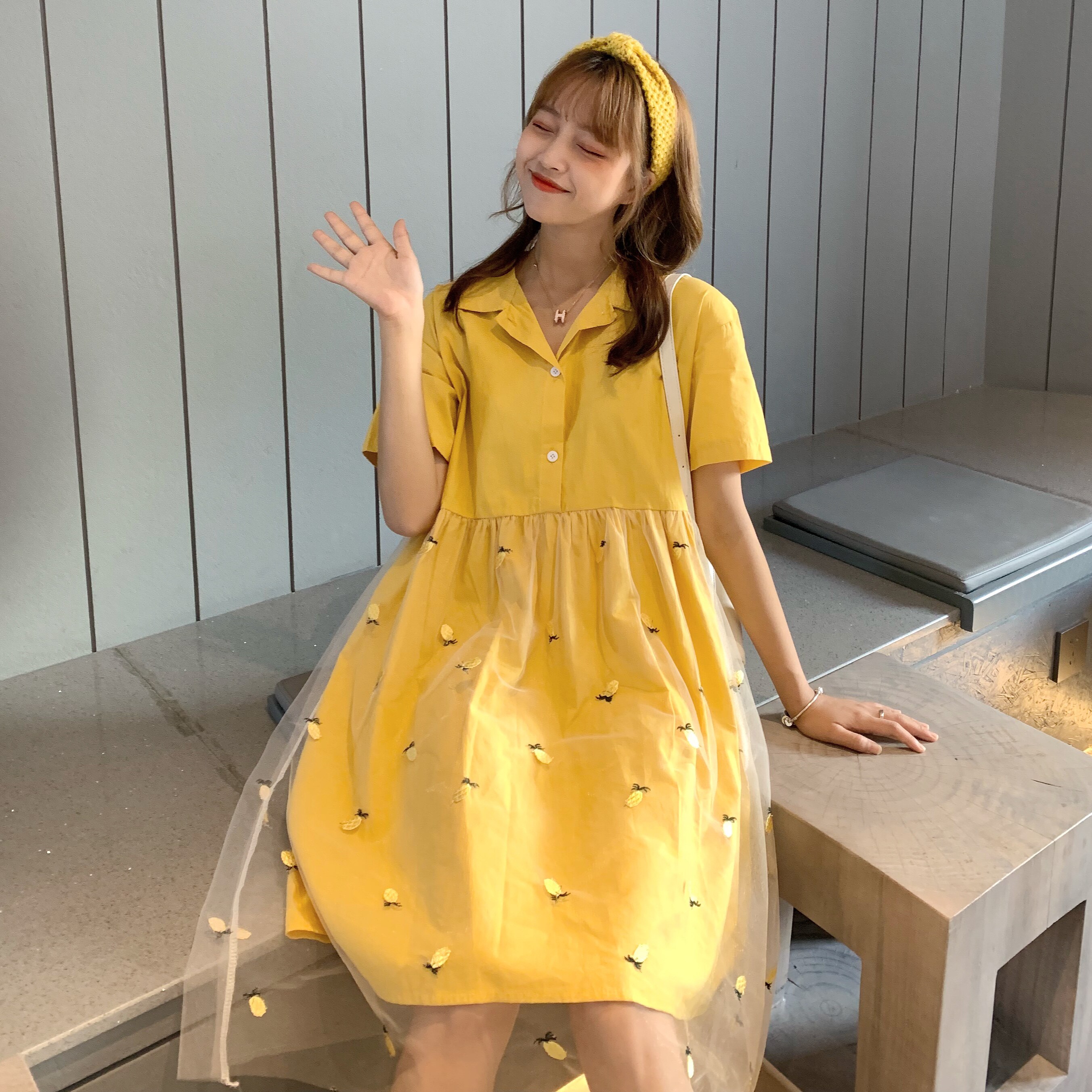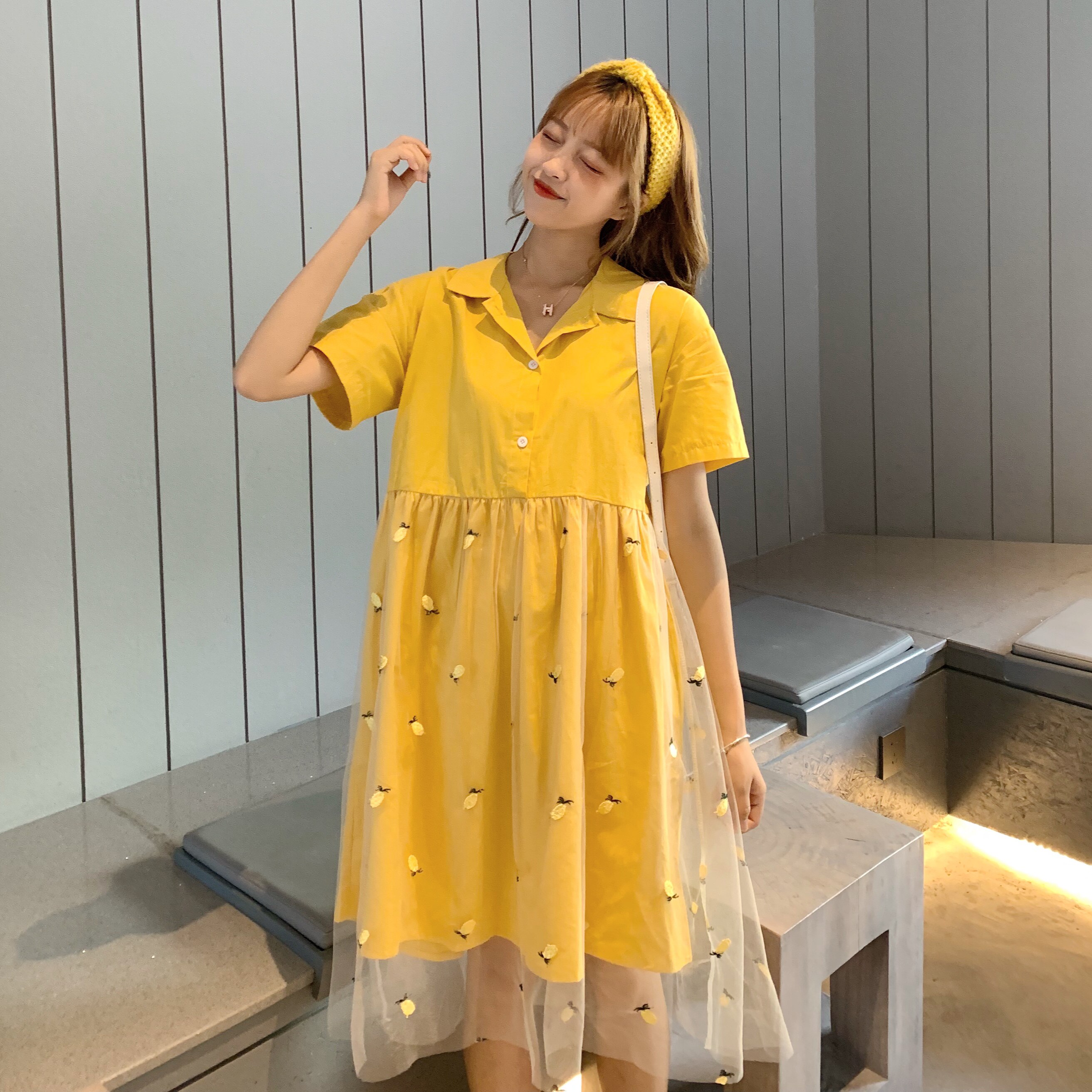 Желтая юбка, длинное платье, кукла, коллекция 2021, подходит для подростков, оверсайз, по фигуре, воротник поло, средней длины