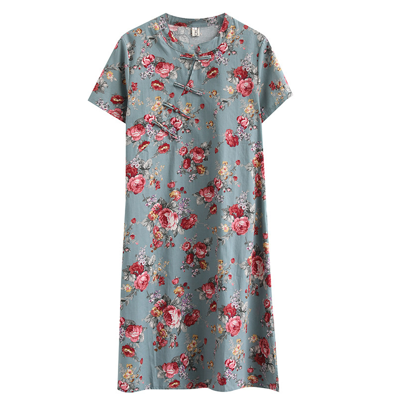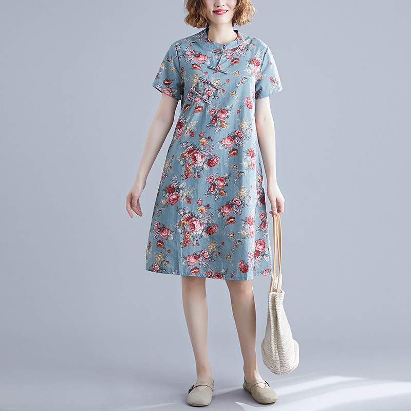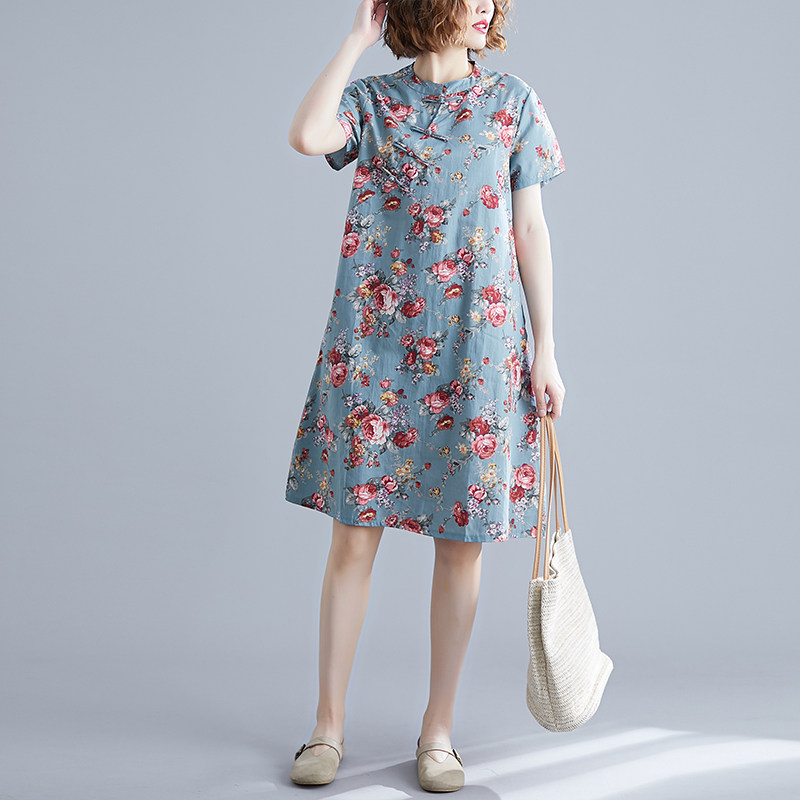 Ретро этническое платье, в западном стиле, подходит для полных девушек, оверсайз, А-силуэт, этнический стиль, из хлопка и льна