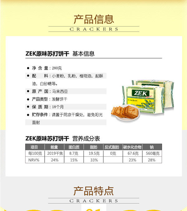 Крекеры содовые ZEK оригинальные 280г/уп импортные из Малайзии