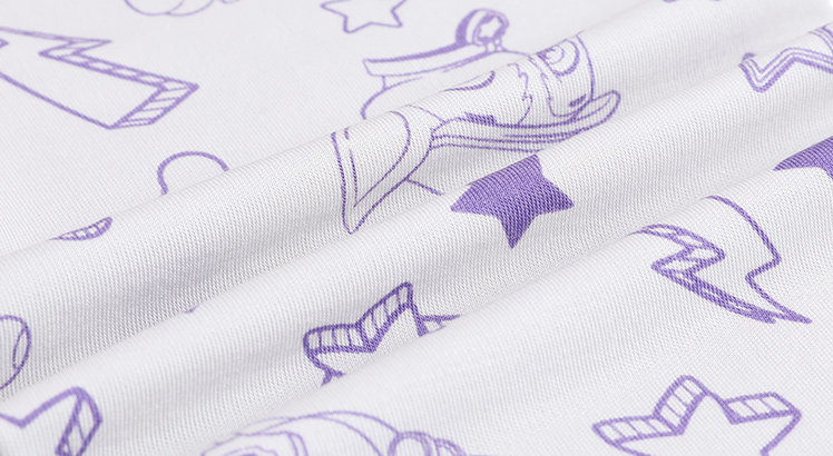 | | Удобная и гладкая смесовая ткань из модала с тонкой и эластичной текстурой, украшенная интересными линиями мультяшных принтов, яркая и энергичная. |