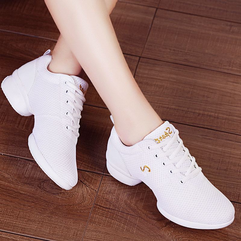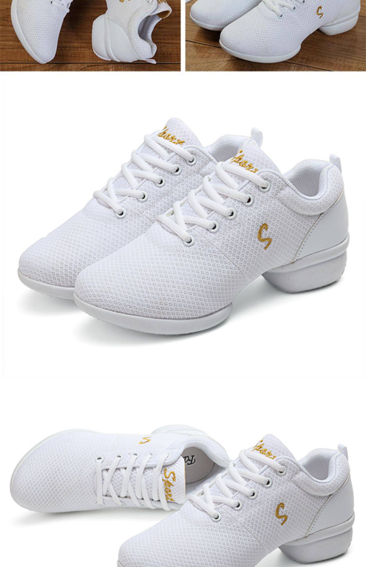 Белая квадратная танцевальная обувь, новинка 2024 года, танцевальная обувь, весенне-осенняя танцевальная обувь, танцевальная обувь с сеткой, спортивная обувь на мягкой подошве