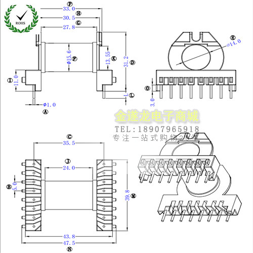 Цвет: Скелет (исключая магнитное ядро), Магнитное ядро ​​(одно оплачиваемое), Полный комплект (1 рамка + 1 пара магнитопроводов)