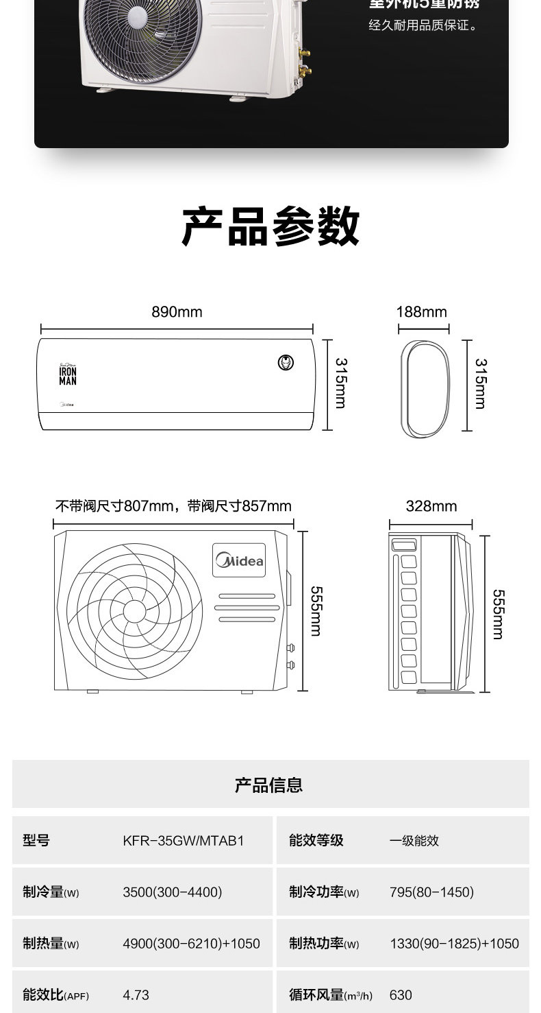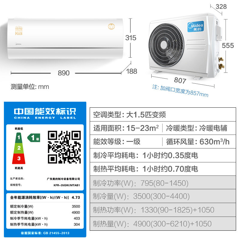 Midea/美的 KFR-35GW/MTAB1 Marvel Custom Firster Energe Saysing Mounding Inverter Condenter Hanging
