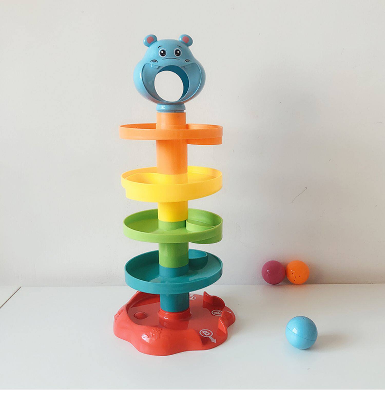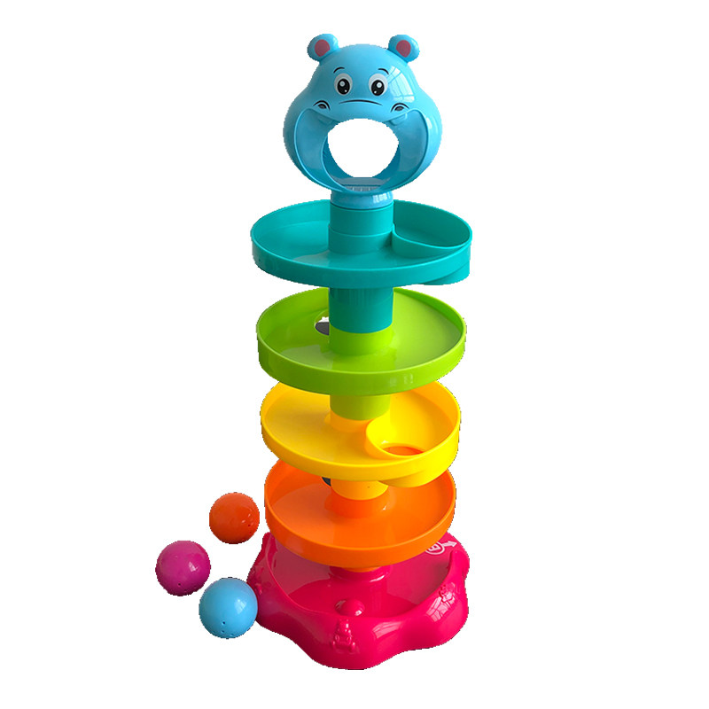 Дженга с рельсами, красочная крутящаяся игрушка, бегемот