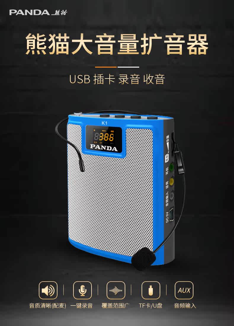 PANDA/熊猫 K1 Портативный учитель громкоговорителей использует учебный гид Little Bee для продажи талию подвесной гарнитуру, чтобы играть на открытом воздухе, выкрикивающий громкий грип