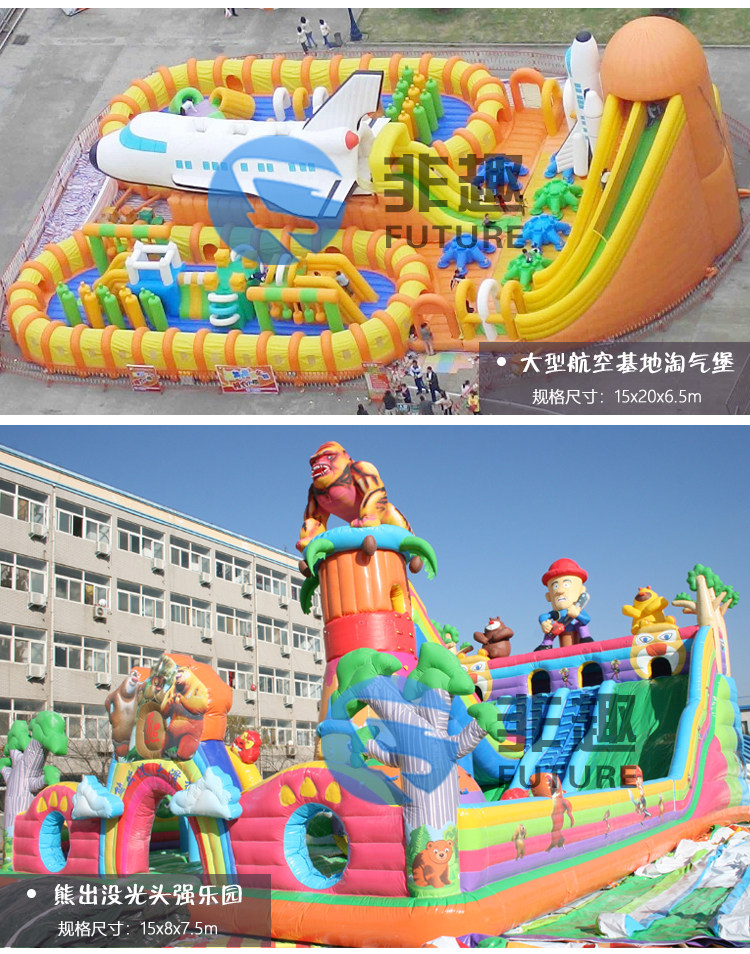 Надувной замок, двухэтажный батут, горка для парка развлечений, оборудование, увеличенная толщина