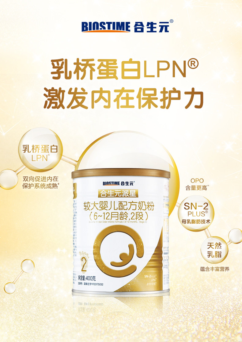 Ограниченная покупка 1 здоровья Юань Пайси Син Большая Детская Формула Порошок молока 2 секция белка моста Zerry 400G × 1 банка