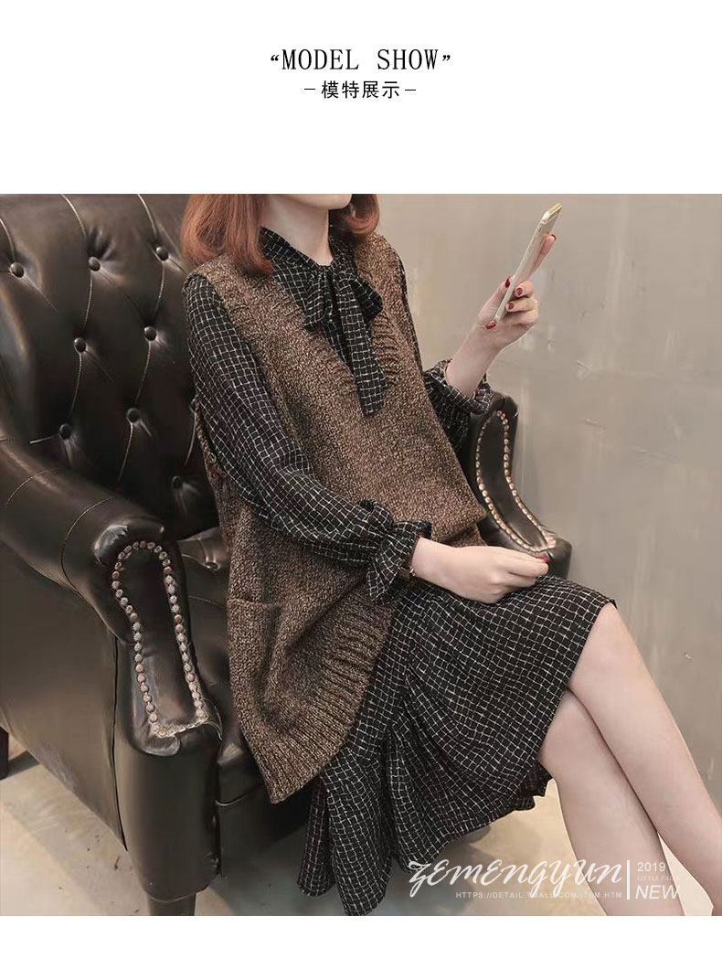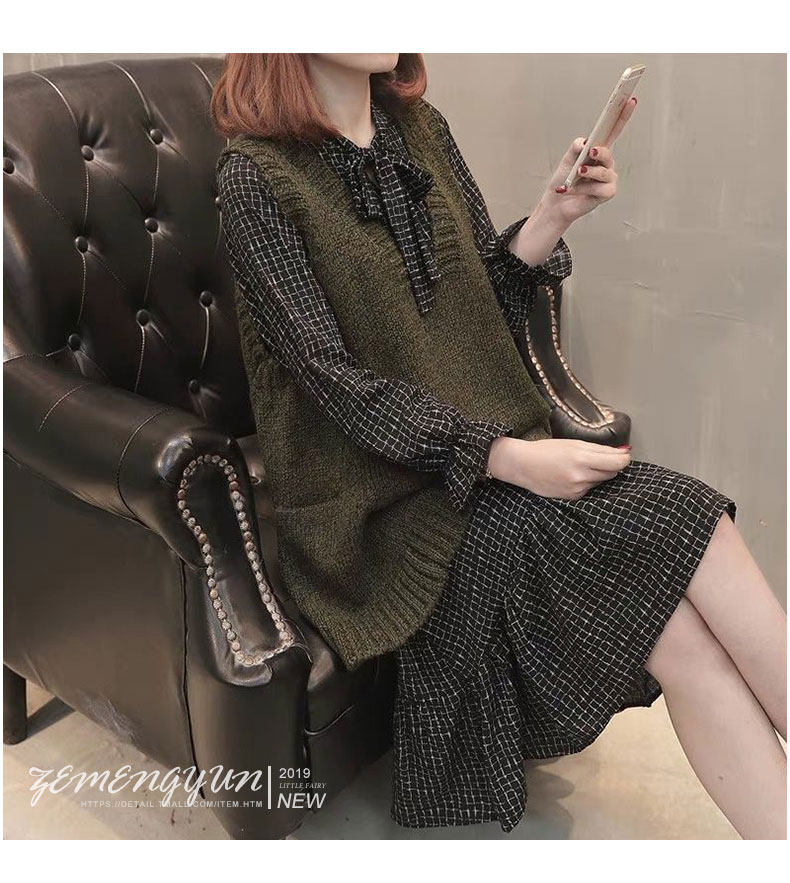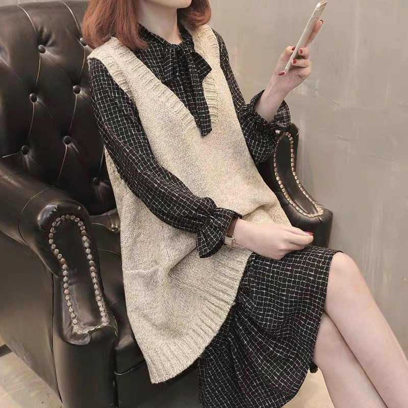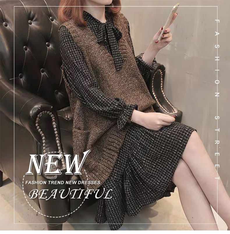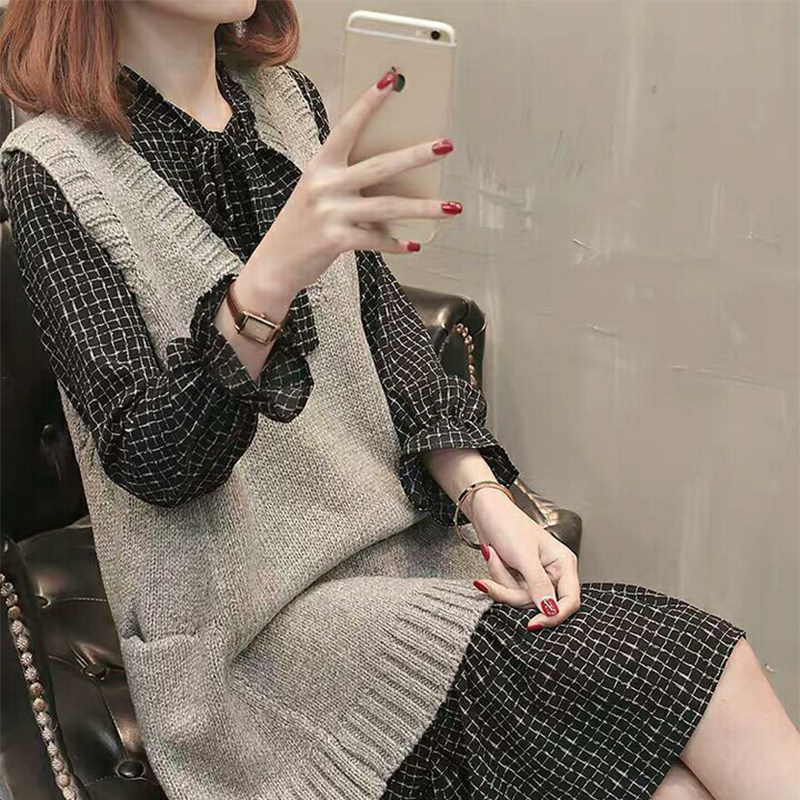 Трикотажное платье, ретро юбка, шерстяное платье, комплект, 2021 года, французский стиль