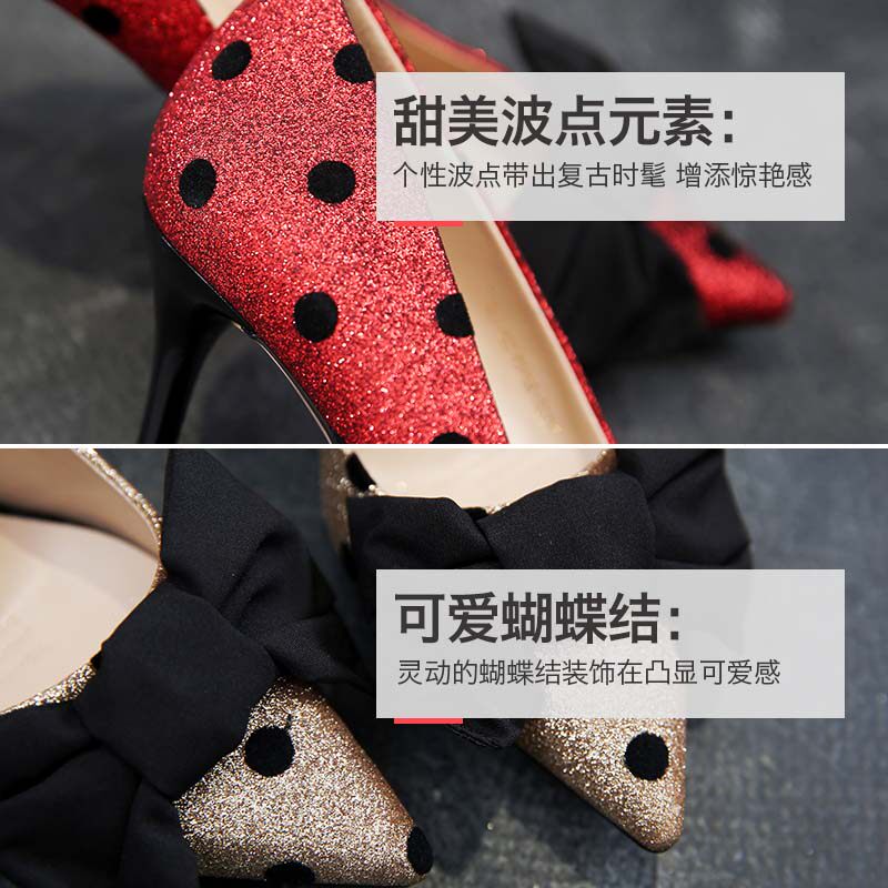 一代佳人 Красные туфли на высоком каблуке, осенние ретро свадебные туфли, популярно в интернете, 2019