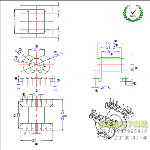 PQ3230 Circular 6+6 Высокочастотный трансформатор -скелет электрический деревянный скелет не содержит кислородного магнитного ядра железа