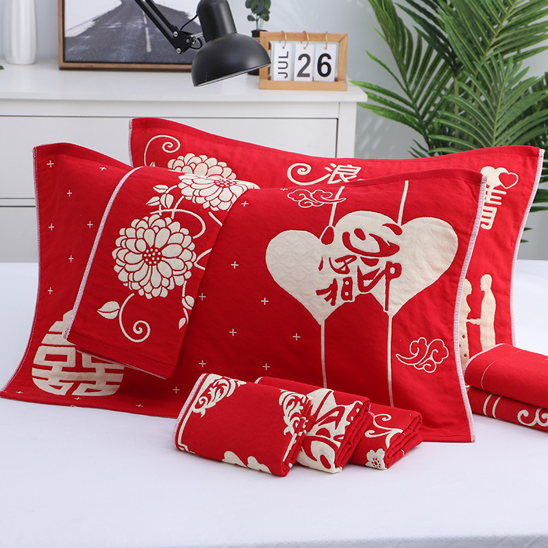 Свадебное полотенце подушки, пара паров подушки Свадебная комната Счастливые события Романтическое возвращение, свадебная церемония, три слоя марлевого хлопка