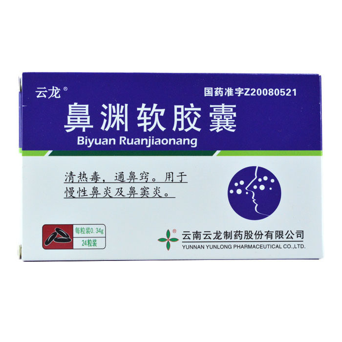 云龙 Мягкие капсулы Biyuan 0,34 г * 24 капсулы в упаковке Заложенность носа Хронический ринит носовых пазух Заложенность носа Снимает боль Чихание Насморк Плохая вентиляция Разгоняет ветер и легкие Головная боль Устранение жара Токсиновый сухой зуд в носу Открытие носа