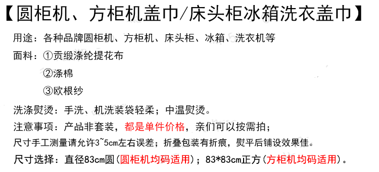 | Технические характеристики: | Полотенце для небольшого покрытия (56*56 см. Квадрат)*1 лист, Крышка (83*83)*1 лист, Крышка (83 см. Круглое)*1 лист |