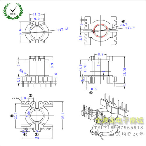 PQ2020 Вертикальный 6+8 высокочастотный трансформатор скелет Baicalenne Skeleton не содержит ферритового ядра PQ2020 Вертикаль