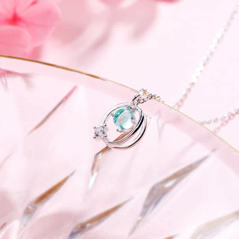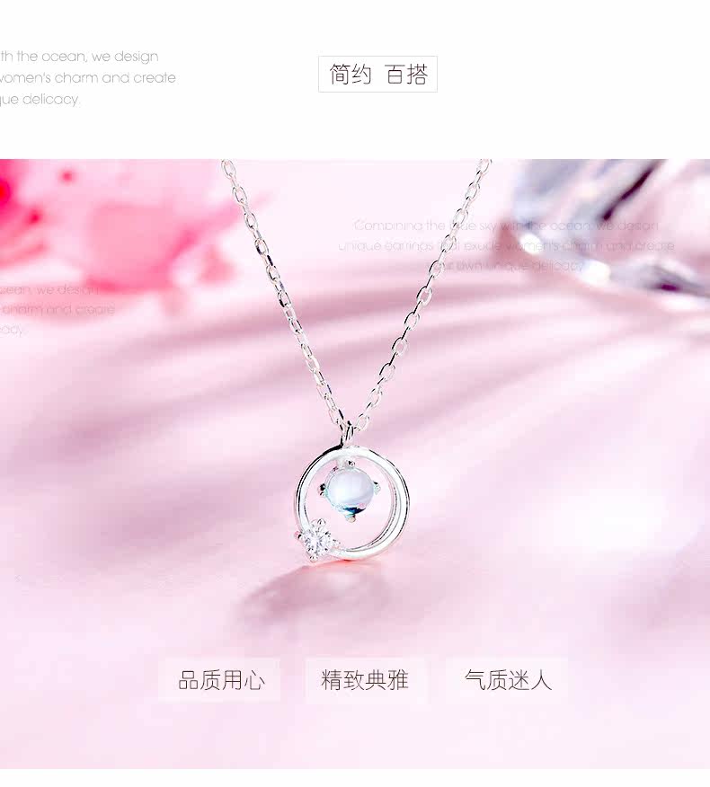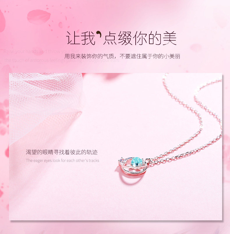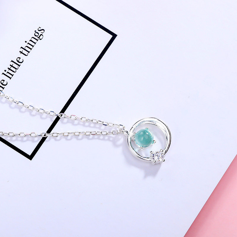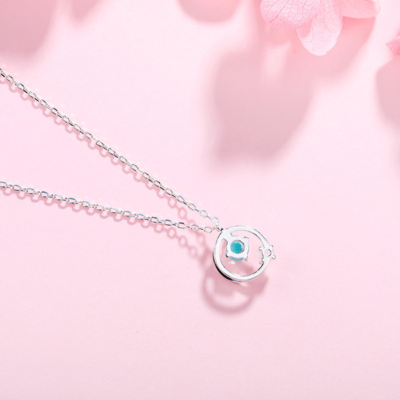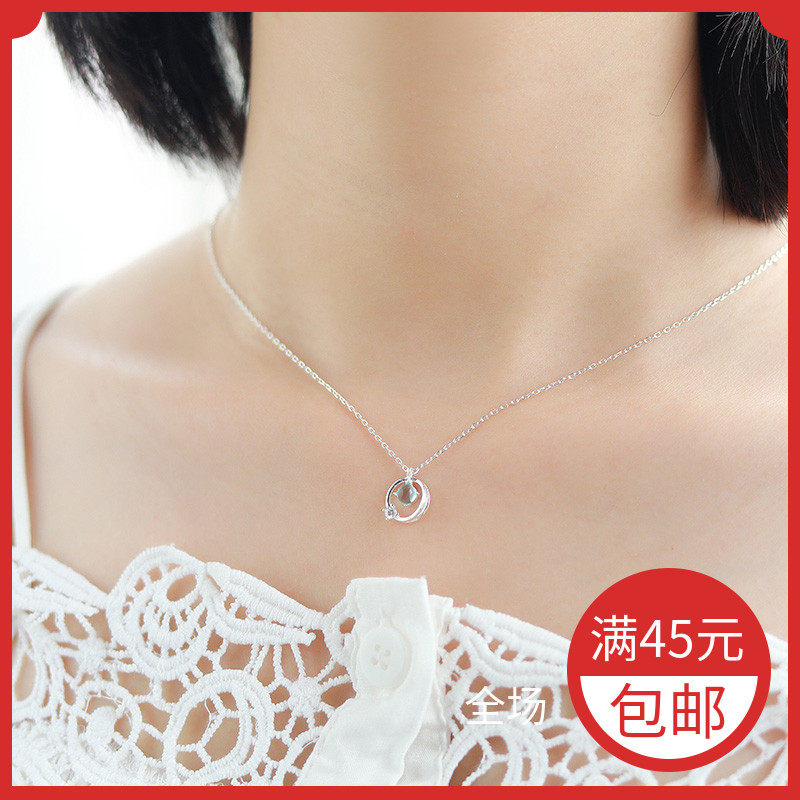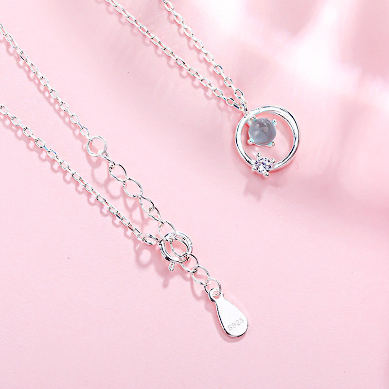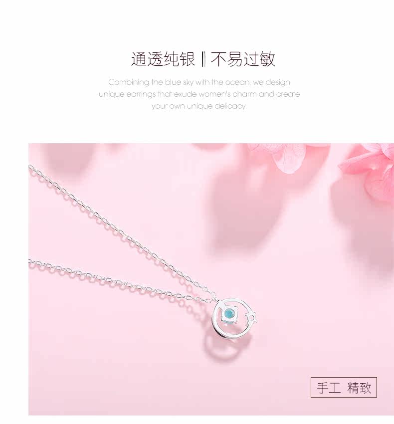 Аксессуар, синее японское ожерелье, милая цепочка до ключиц, серебро 925 пробы, простой и элегантный дизайн