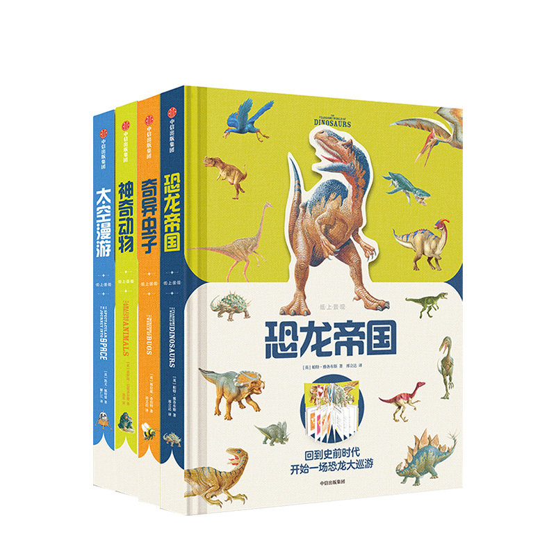 [5-12 лет] бумажный пейзаж Детский сериал (4 тома) Волшебные животные+странные черви+космические роуминг+империя динозавров