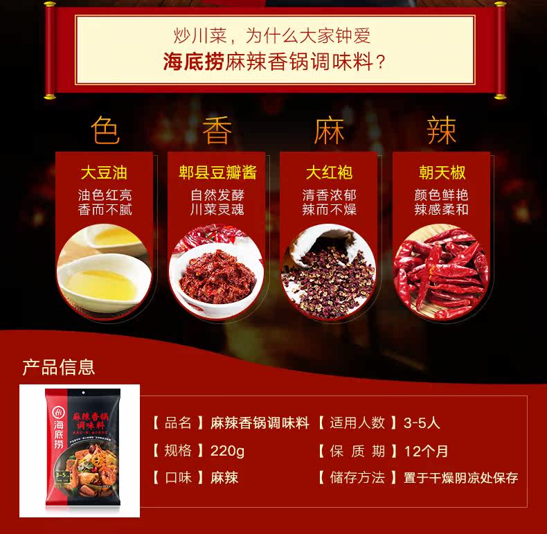 海底捞 Острый горшок с острым горшкой горшок, пряные креветки, сушеный горшок, приправа, семейный горячий горшок нижний материал 220G