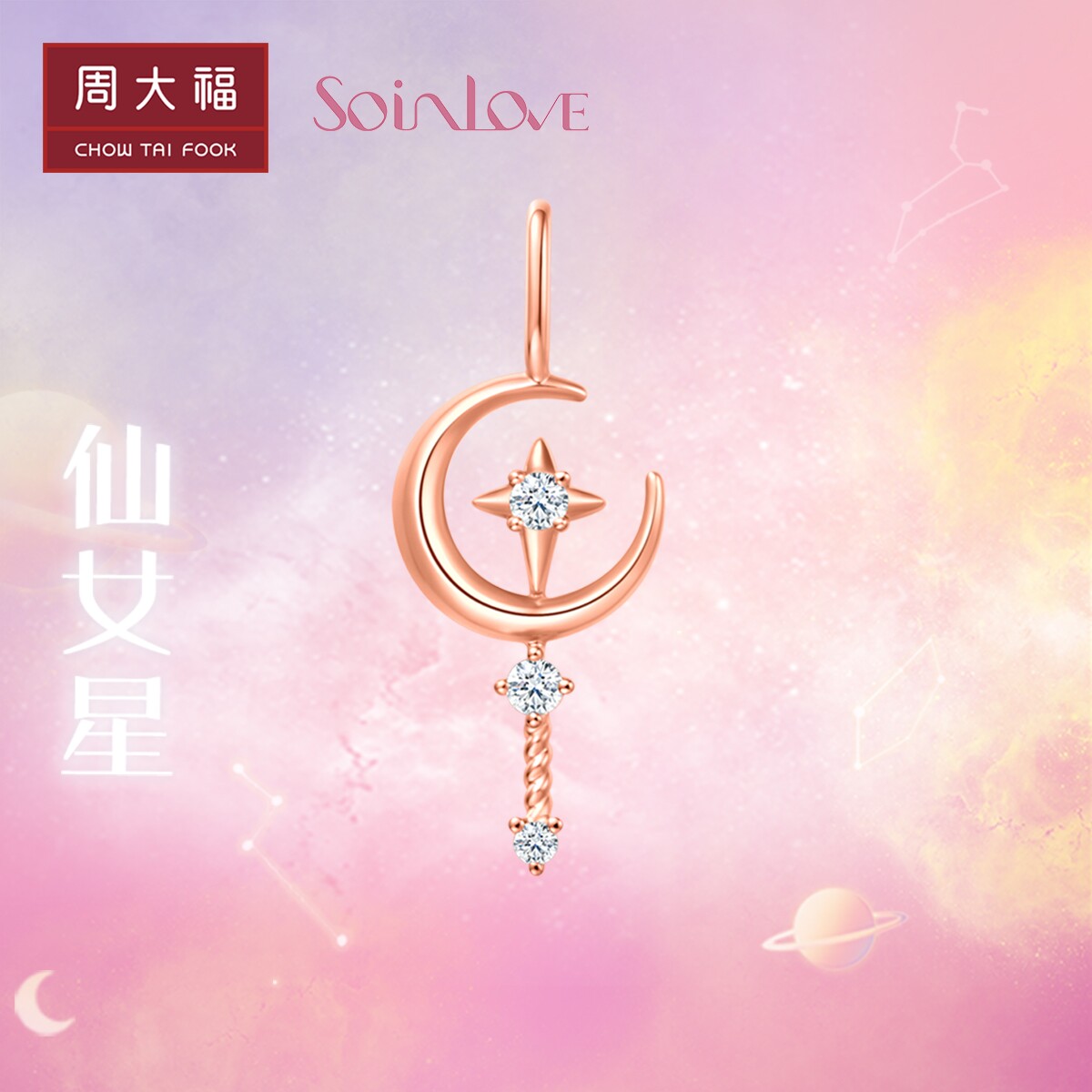周大福 Soinlove Fairy Star Fairy Stick 18k Gold Rose Gold Pendent Vu1516 Бутик