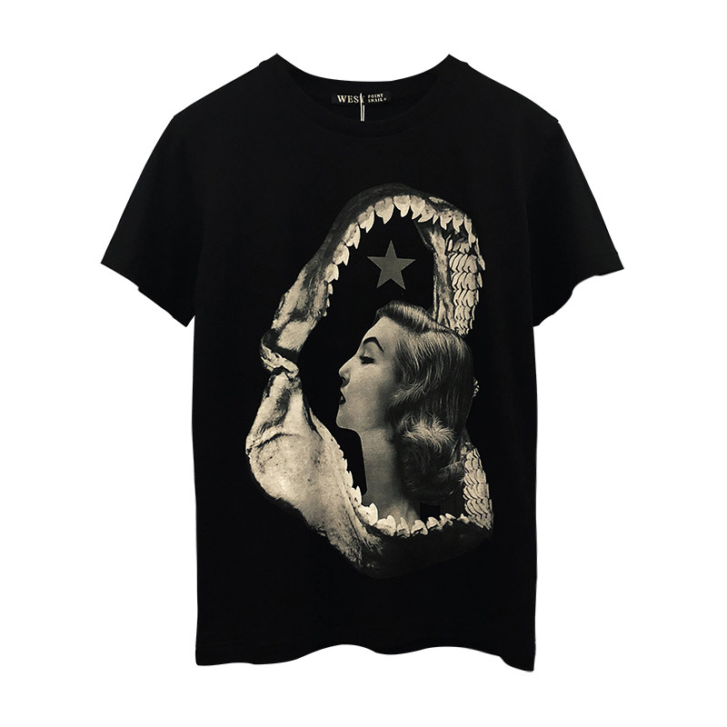 Трендовая акула, футболка, парная одежда, европейский стиль, свободный крой, подходит для подростков, короткий рукав, для влюбленных