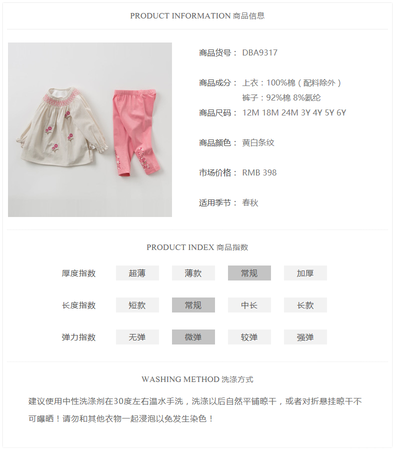 【Clear】 Davebella Davebella Spring и осенняя девочка набор детских цветочных двух частей набор