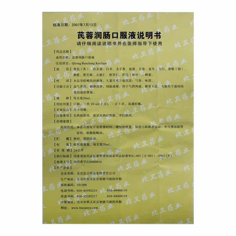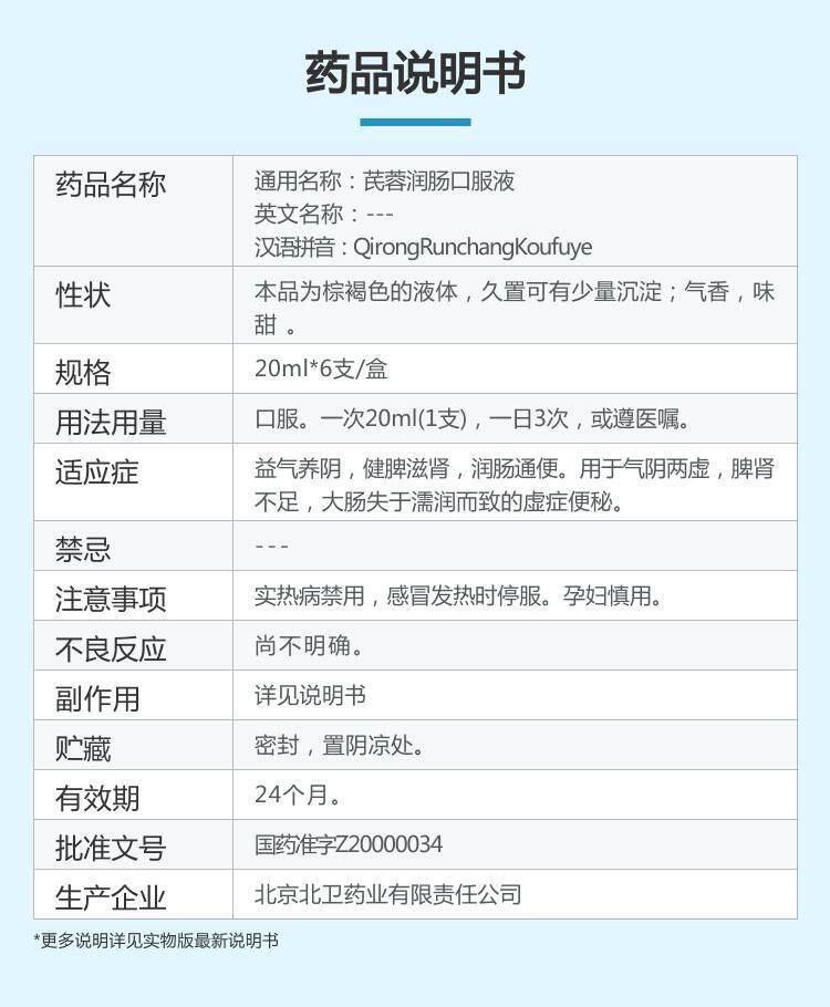 齐容 Qi Rong Rong Чистого перорального раствора 20 мл*6 Поддержка/ящик Увлажняющий кишечный стул для питания ци и инь, запоры, селезенки, Qi и йя, дефицита селезенки и почек, флагманский магазин официальный флагман