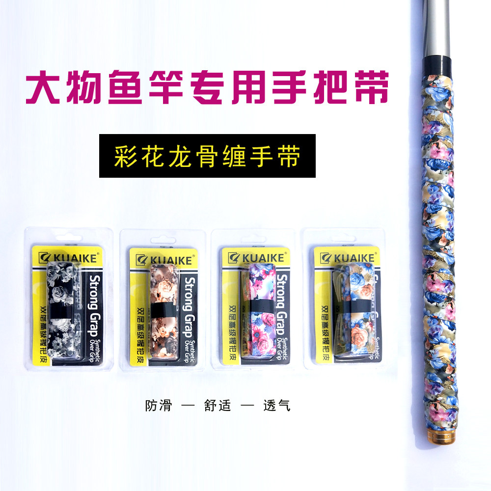 Рука рыбацкого стержня удерживает обернутый ремень, запутанный киль против стекла, насос и электрический анти -инсуляционный клей для рук, поглощающий пот -поглощающий ремень