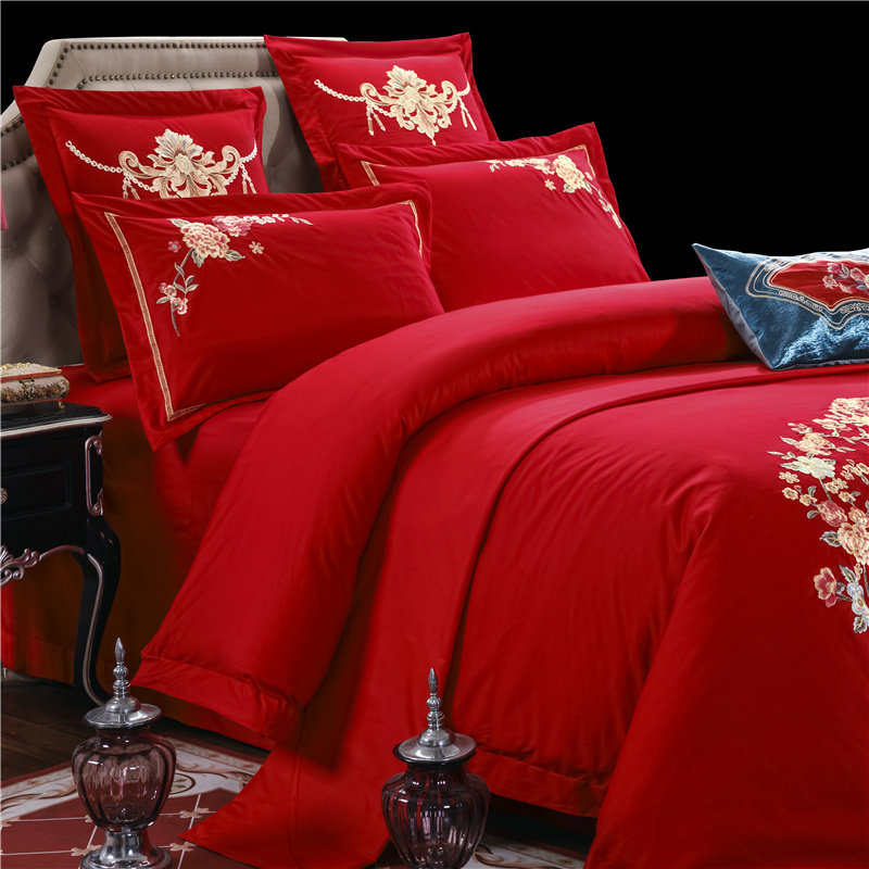 南极人 Красный хлопковый комплект, хлопковые свадебные цветы, 4 предмета, с вышивкой, постельные принадлежности