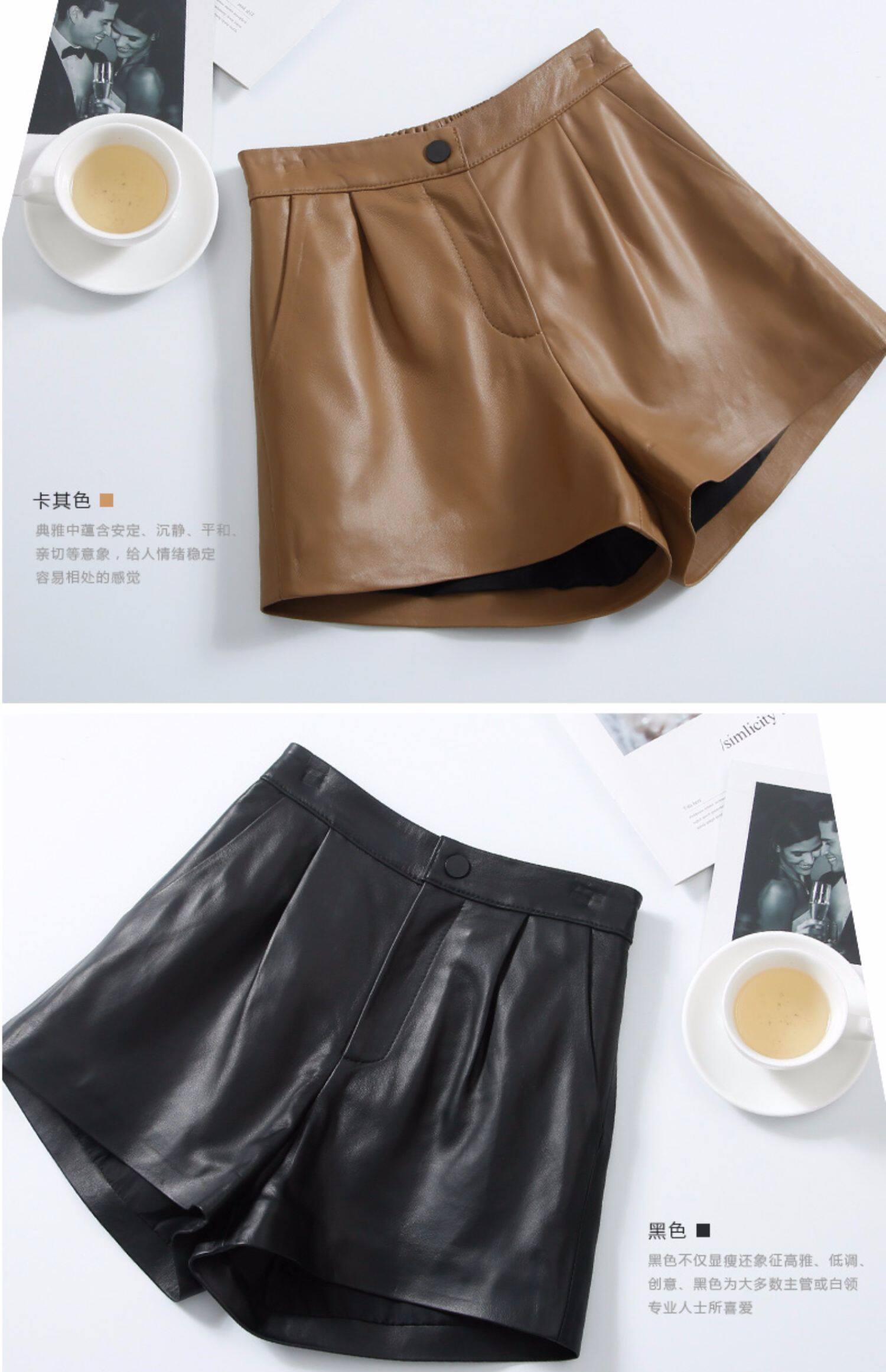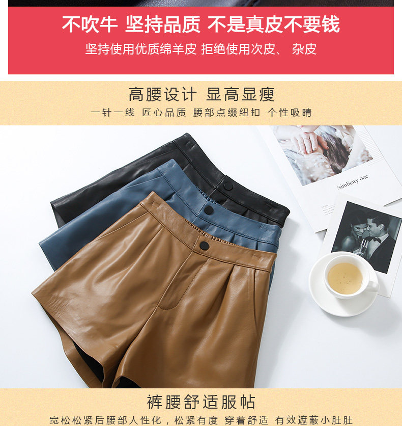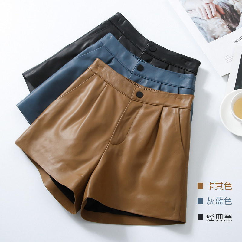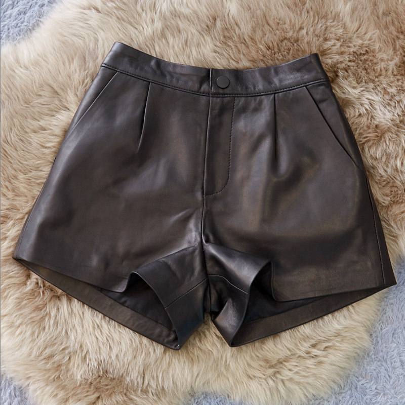 Шорты, штаны, коллекция 2023, из натуральной кожи, подходят для подростков, высокая талия