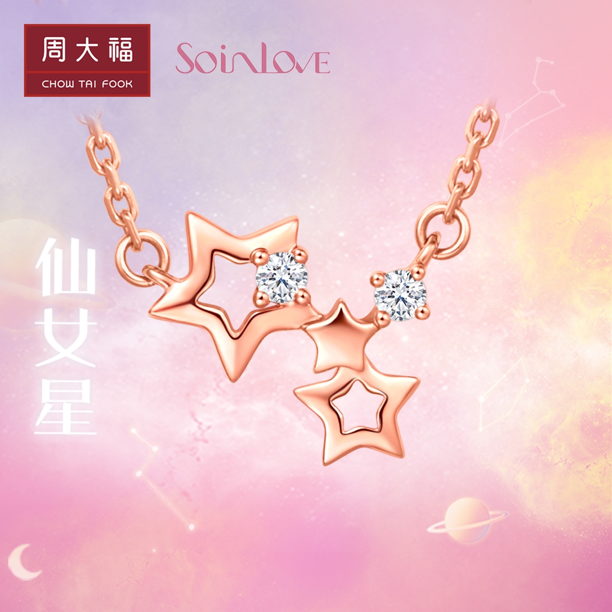 周大福 Soinlove Fairy Star Fairy Star River 18k Diamond Colence Pendant Vu1213 Подарок