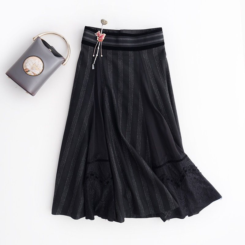 Шерстяная черная осенняя юбка, яркий броский стиль