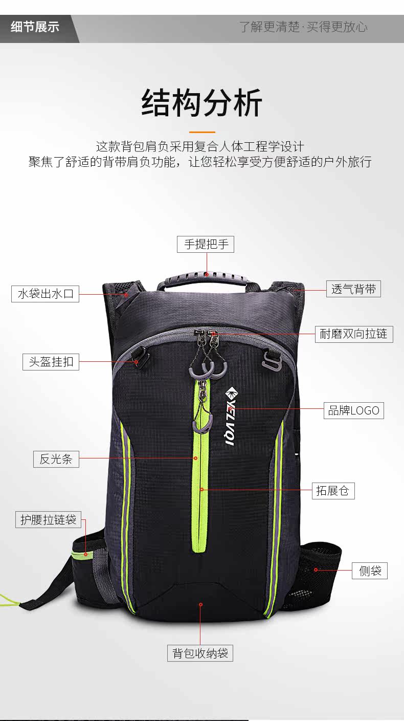 Дорожный горный рюкзак для велоспорта, емкость для воды, водонепроницаемая сумка подходит для мужчин и женщин, снаряжение