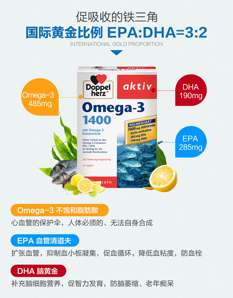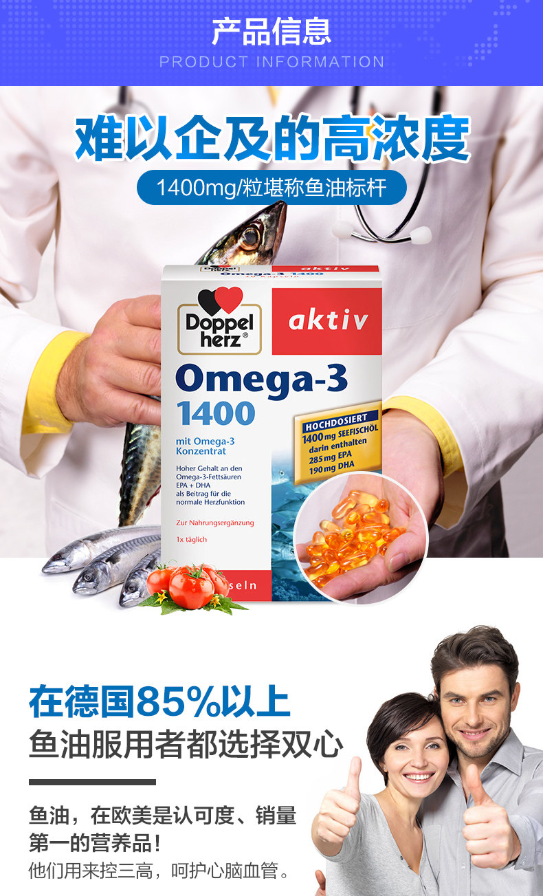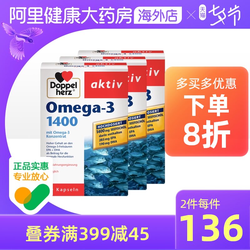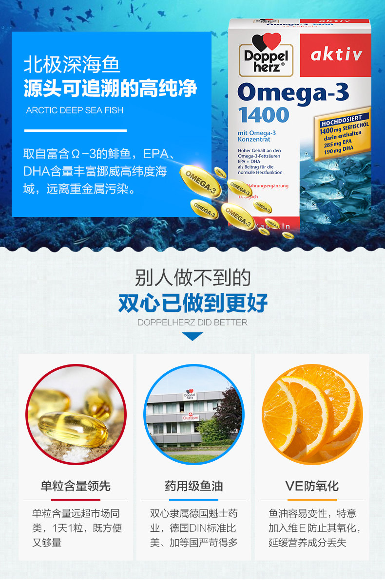 Doppel Herz/双心 Концентрированная DHA холодная вода глубоко море рыбы OME OMEGA-3 Сердечно-сосудистые сердечно-сосудистые сосудистые заболевания*3