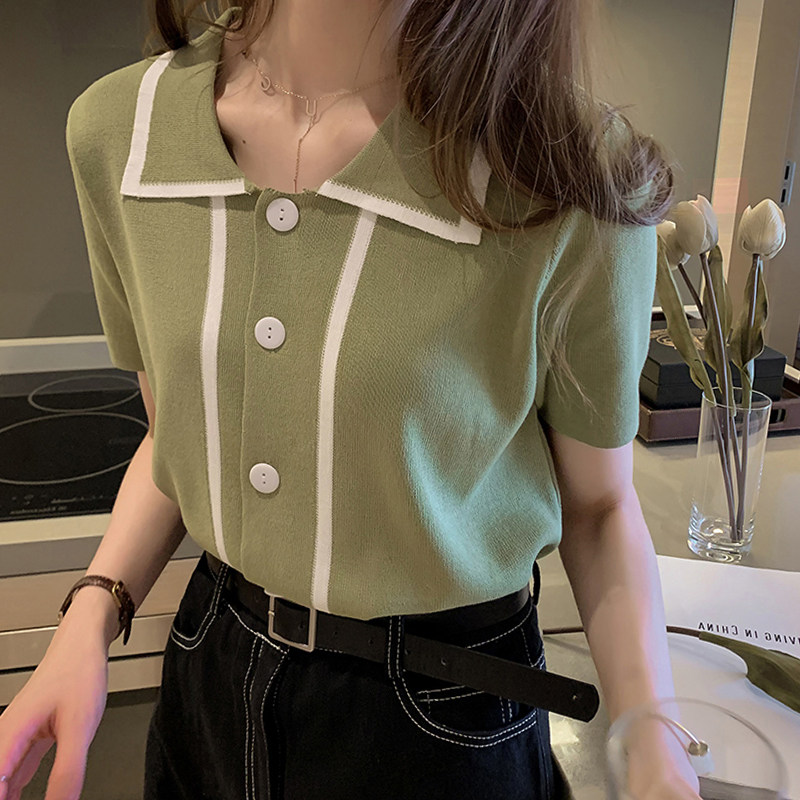Летний трикотажный кардиган, свитер, футболка с коротким рукавом, большой размер, свободный крой, воротник поло