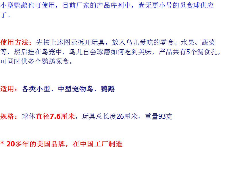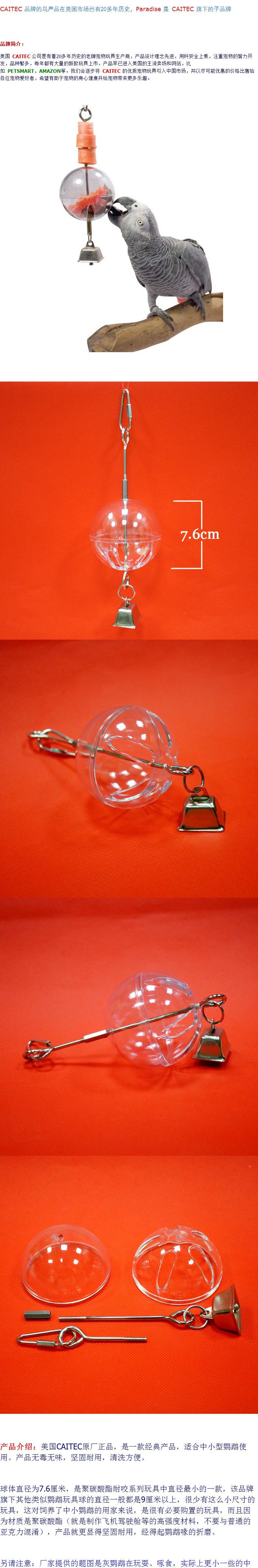 CAITEC Фора для бренда American Paradise Bird на Bell Ball Parrot Утечка Food Toy подходит для маленьких и средних попугаев