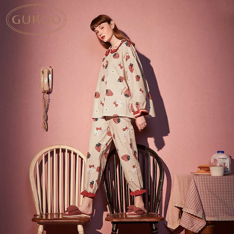 Gukoo/果壳 Осенняя пижама, тонкий милый лонгслив, комплект